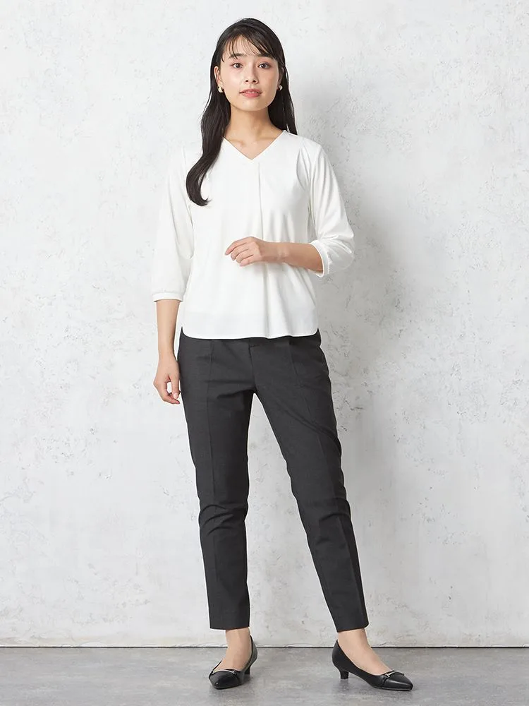 フロントとバックにタックをあしらい、身頃に程よいゆとりを取り入れています。