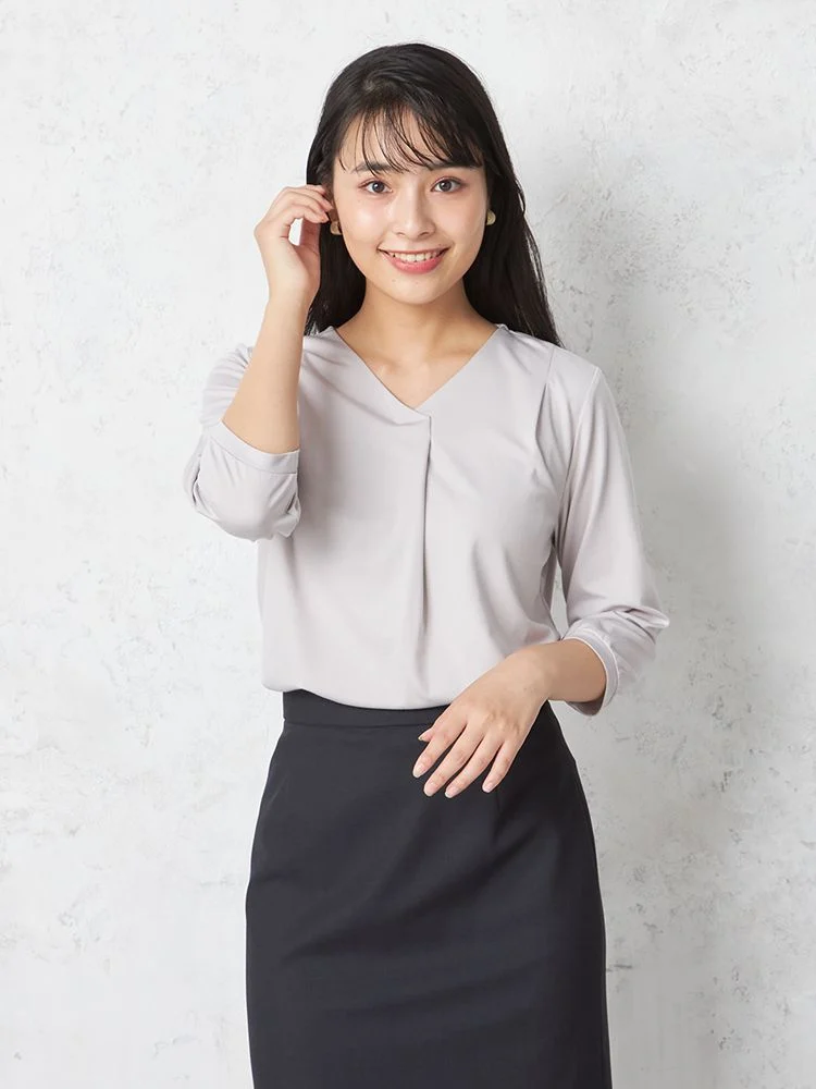 【INDIVI】カットソー 7分袖 シルケット天竺 V開きトップス ウォッシャブル 無地 通年【レディース】(L.グレー)