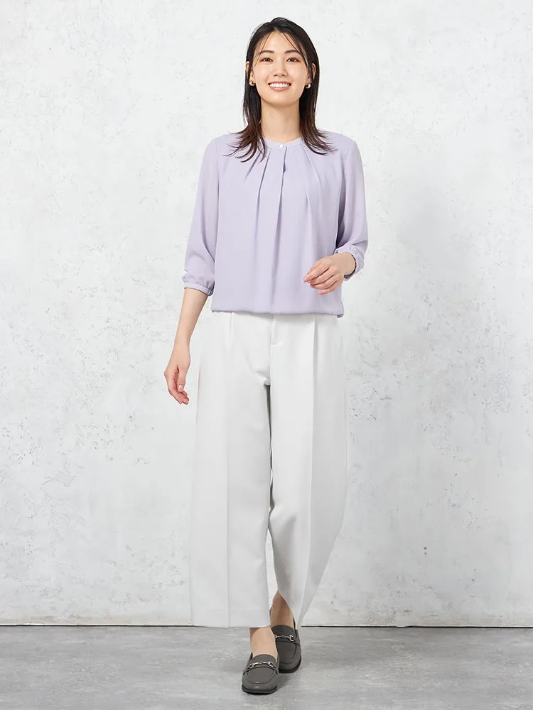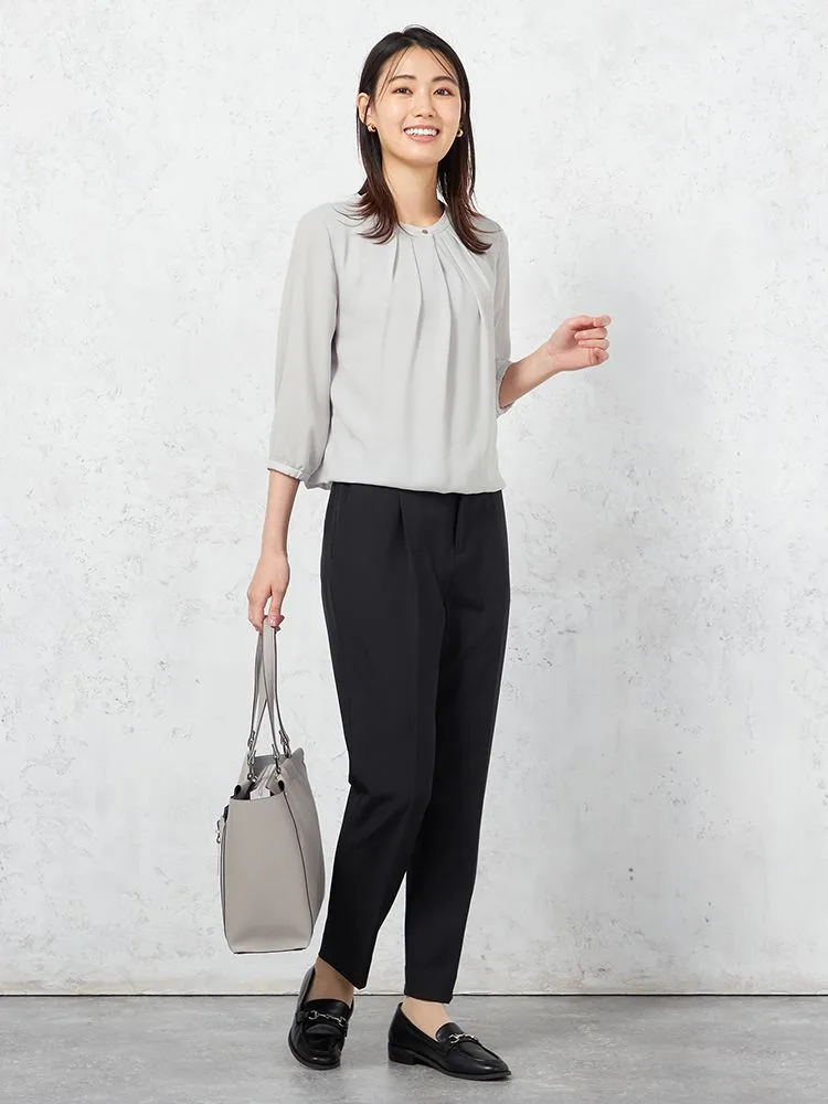 女性らしさのあるやわらかな素材感に、タックのアクセントで華やぎをプラスした1枚です。