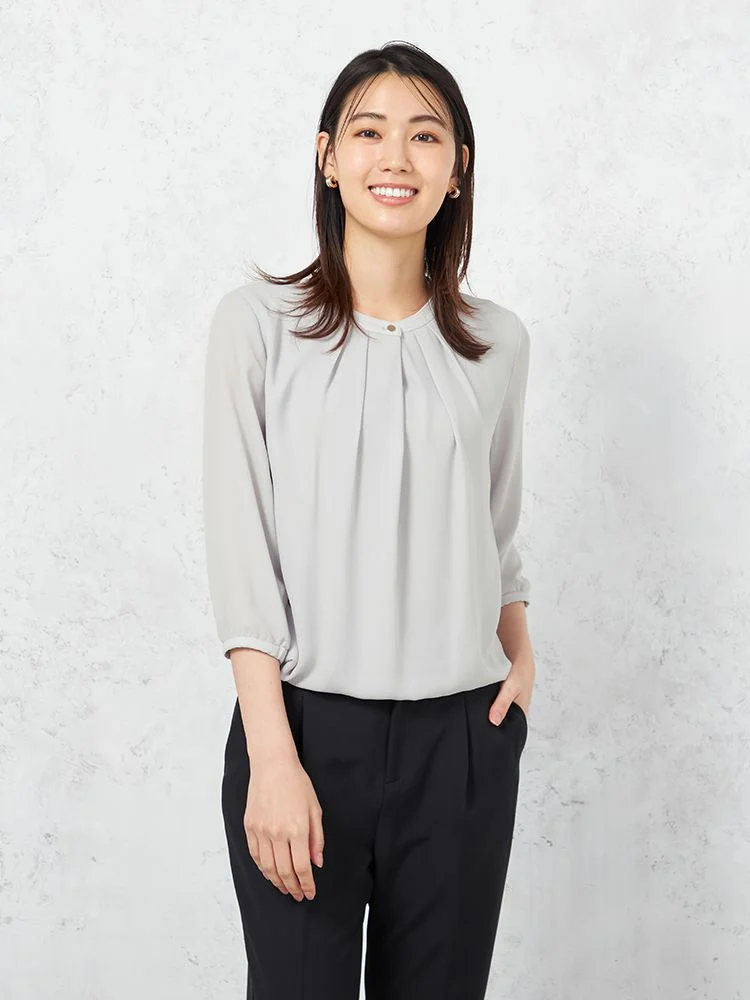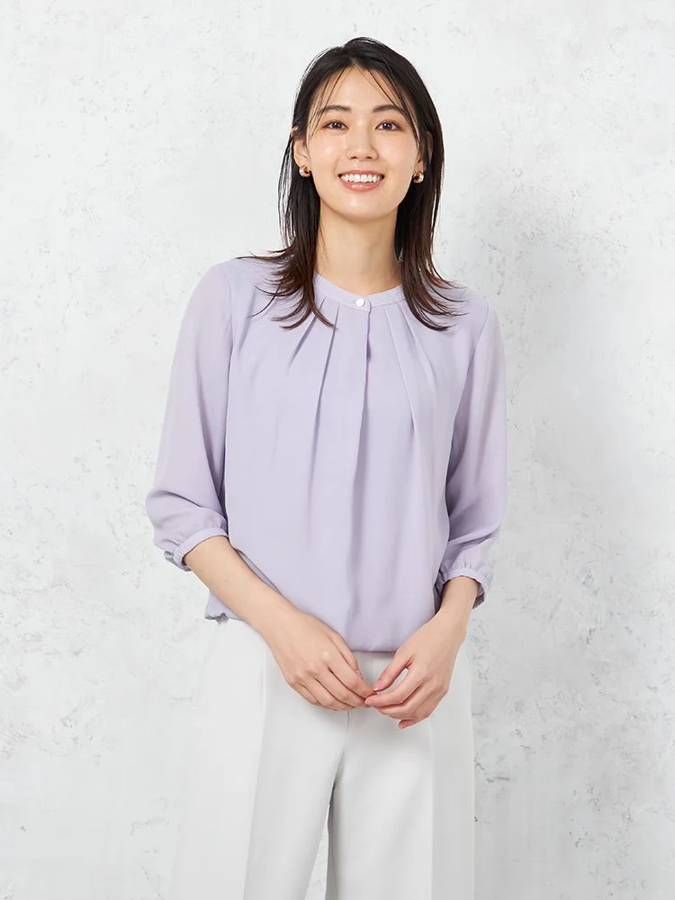さらりと1枚ではもちろん、ジャケットのインナーとしてもお使いいただける7分袖ブラウス。