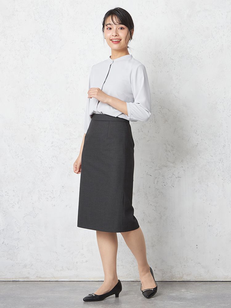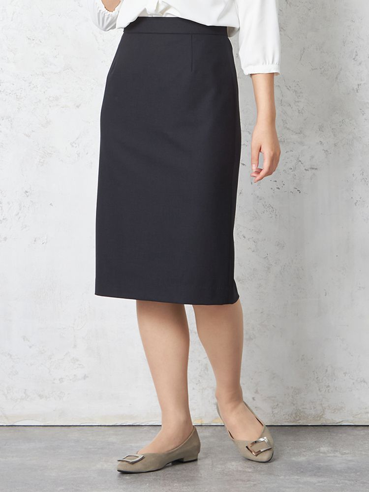 スリムなシルエット、膝下丈でエレガントに仕上げたシンプルなスカート。
