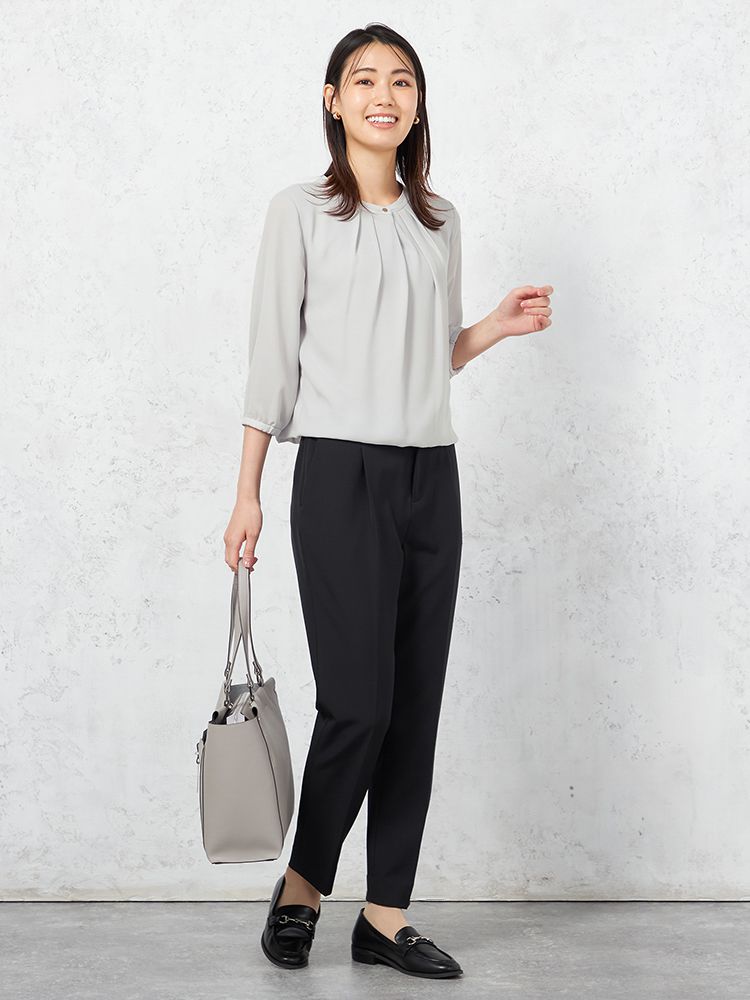 カジュアルからきれいめまで、マルチにお使いいただけるシンプルなテーパードパンツ。