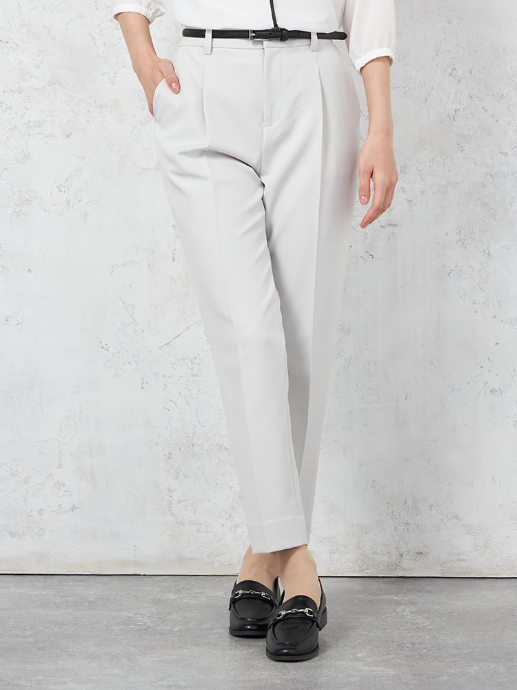 センタープレスできちんと感を演出しながらも、タック入りでゆとりのある穿き心地を実現した快適な1枚。