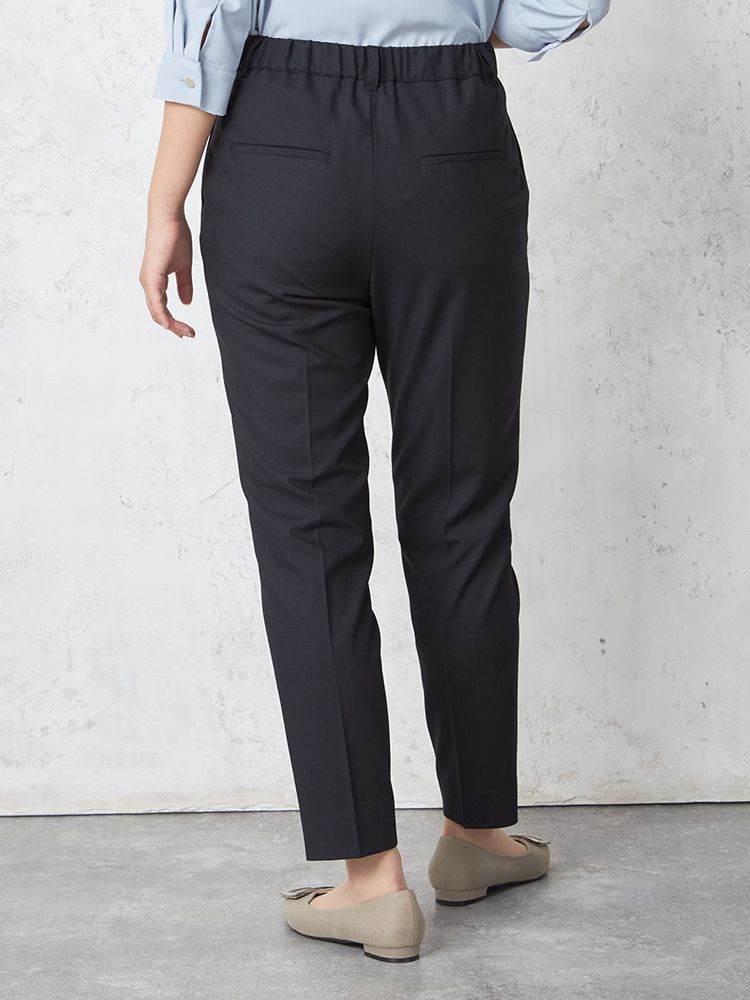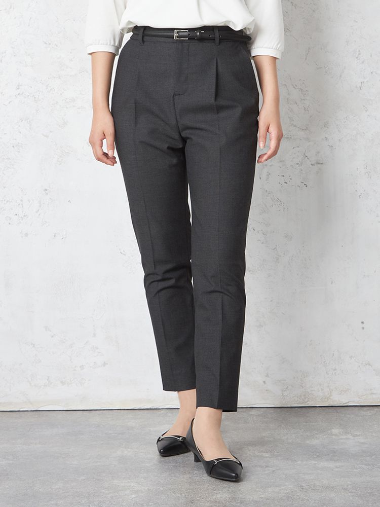 フロントタックで腰まわりにゆとりをプラスしたセンタープレスパンツ。