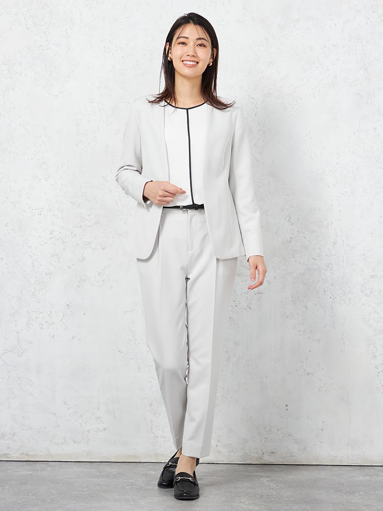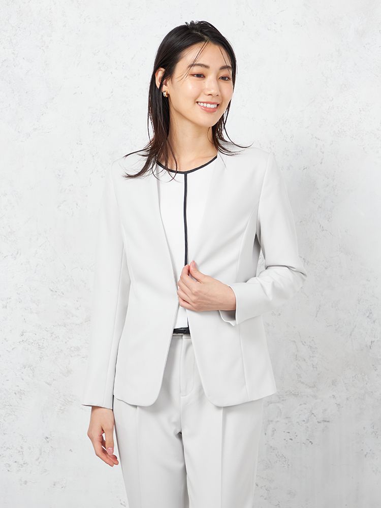 ハンサムなスタイリングを演出してくれる、クリーンな表情のノーカラージャケット。