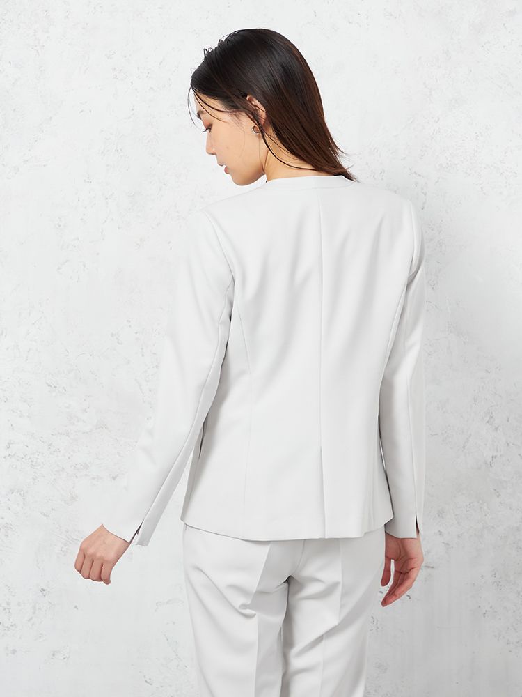 【INDIVI】ウォッシャブル ノーカラージャケット ダブルクロス 無地 通年【レディース】(L.グレー)