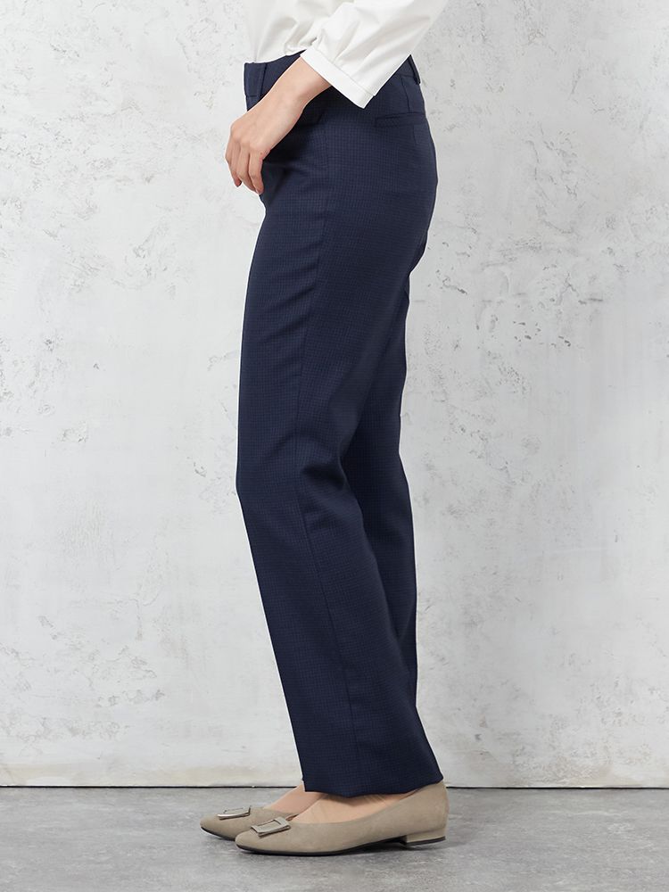 【ストレッチ】パンツストレート【REDAFLEXO】ストレッチインベルネイビーチェックSTOVEL&MASON秋冬【レディース】
