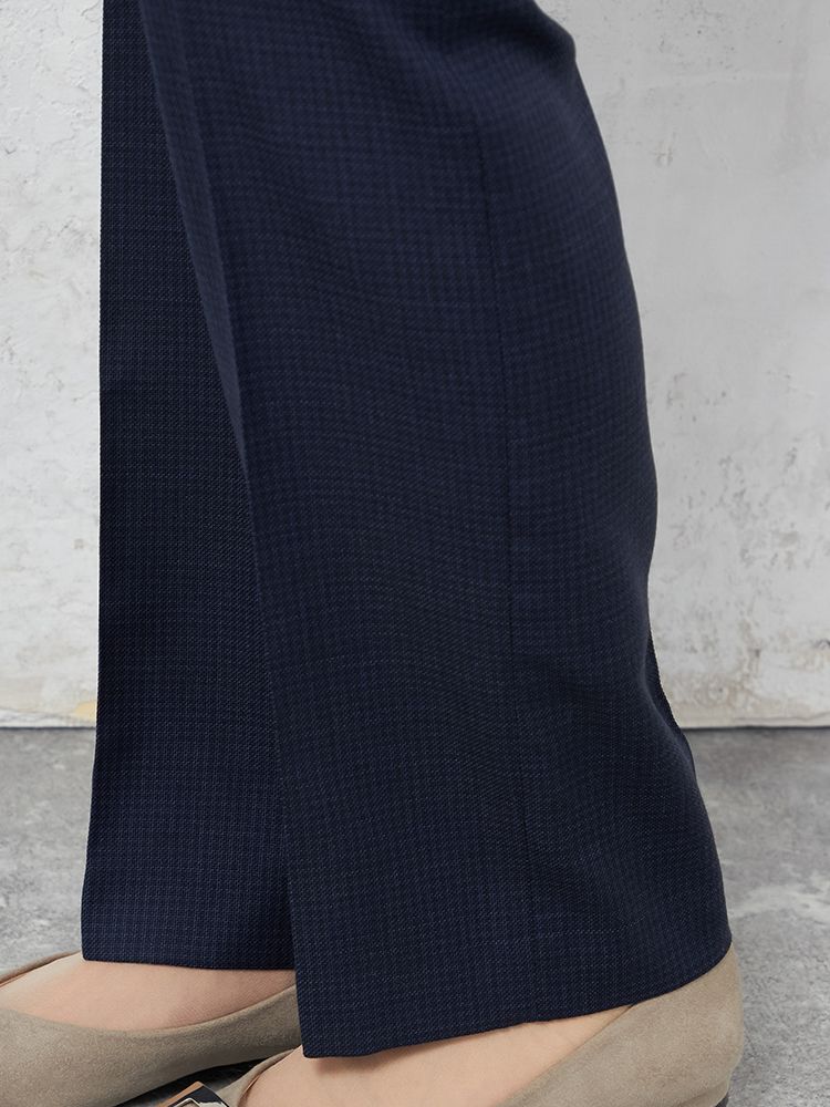 細やかなハウンドトゥース柄で、トップスを選ばず取り入れやすいアイテムとなっています。