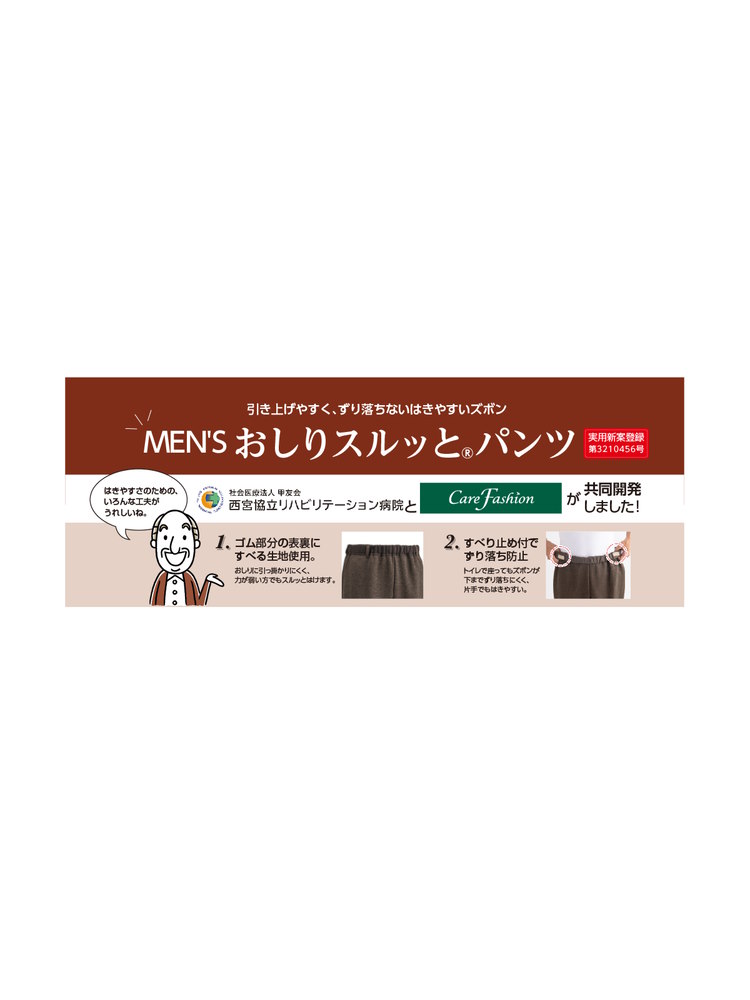 メンズ おしりスルッとニットホッピングパンツ/介護ズボン/はきやすい/ウエストゴム/敬老の日/ギフト/プレゼント 【CF】(ブラウン)