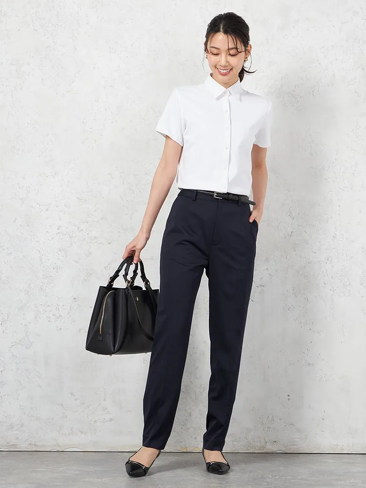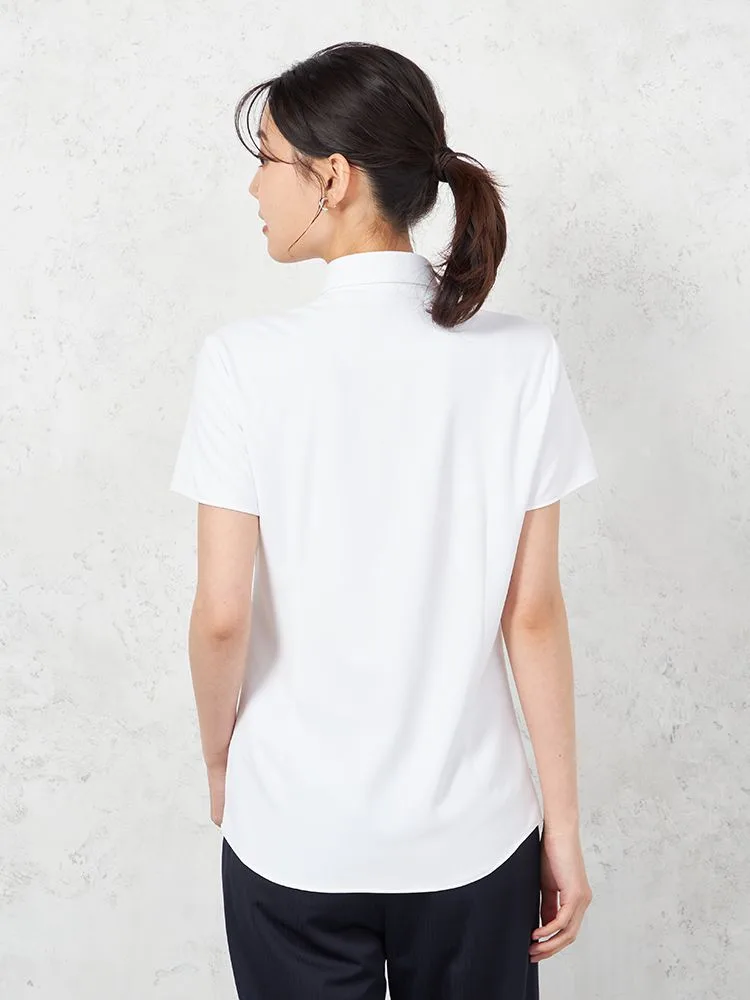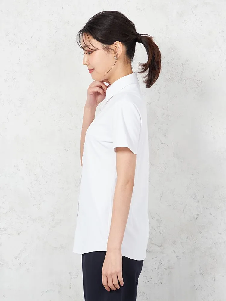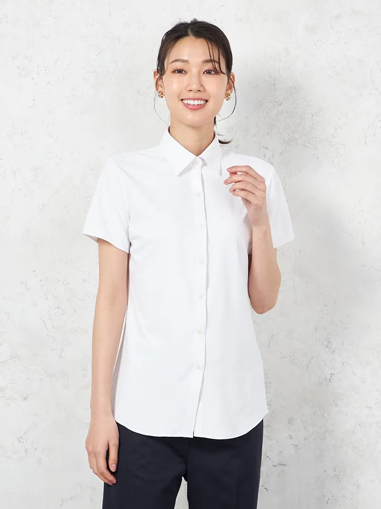 【完全ノーアイロン】半袖 ブラウス i-shirt 透け防止 白無地 レギュラーカラー アイシャツ 春夏【レディース】