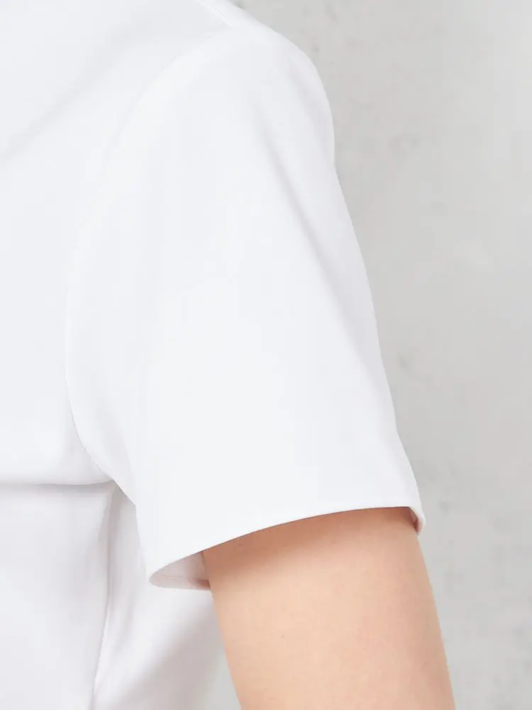 【完全ノーアイロン】ブラウス半袖シャツスキッパー【アイスライブ】冷感吸汗速乾白無地i-shirt春夏【レディース】