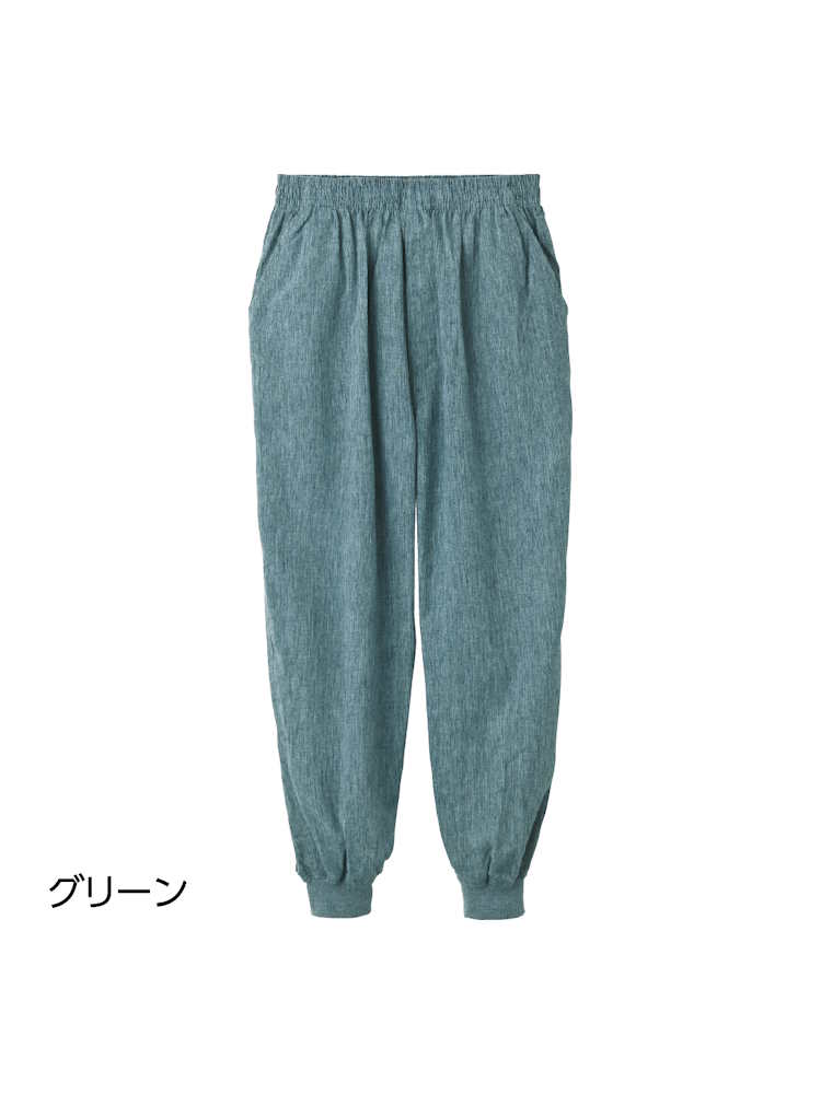 メンズ 麻混楊柳リブパンツ/紳士用/洗濯機OK/春夏/ギフト/プレゼント【CF】(グリーン)