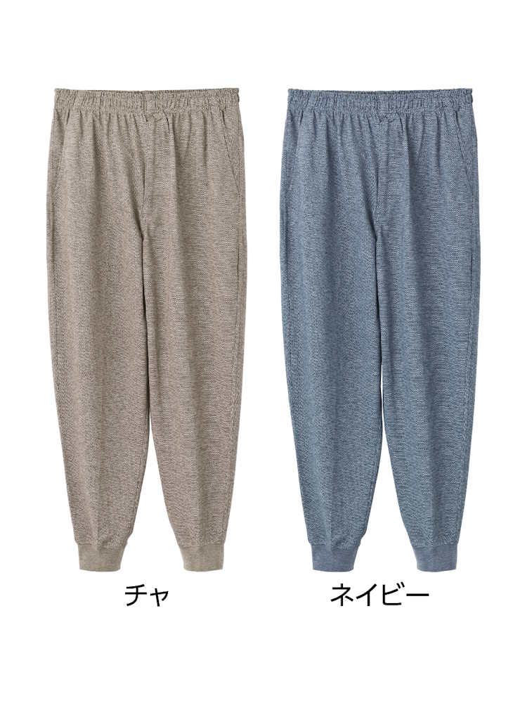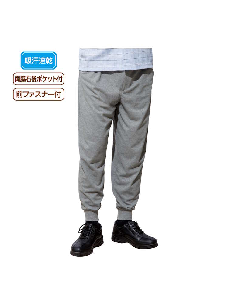 見た目もすっきりで動きやすい裾リブタイプ。前ファスナー仕様で便利です。清涼感があり、吸汗速乾の快適素材を使用しています。お散歩や家の中など、どんな場面でも活躍する日常使いにぴったりのパンツです。