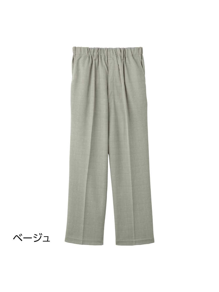 総ゴムでラクラクなのにきちんと見える人気のパンツ。ベルトループ付きなのでスラックスのような見た目です。肌に優しい綿混素材を使用しています。着回ししやすいシンプルなデザインも嬉しい1着。