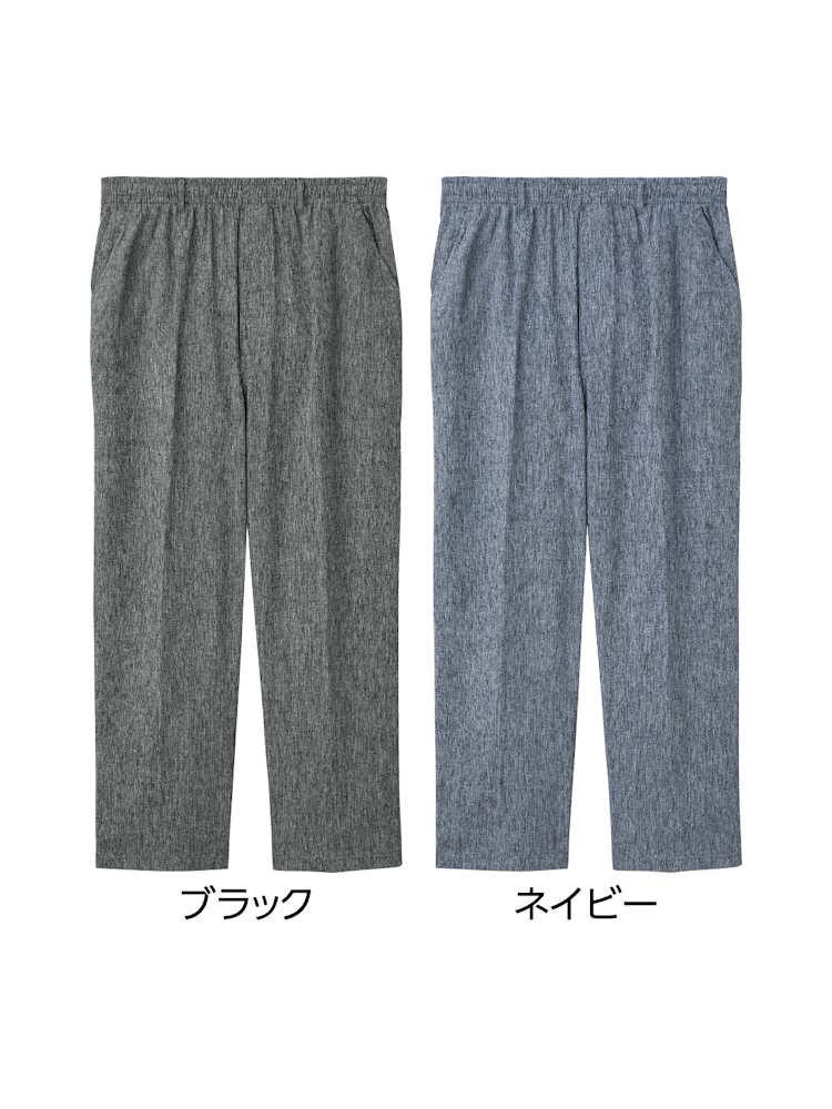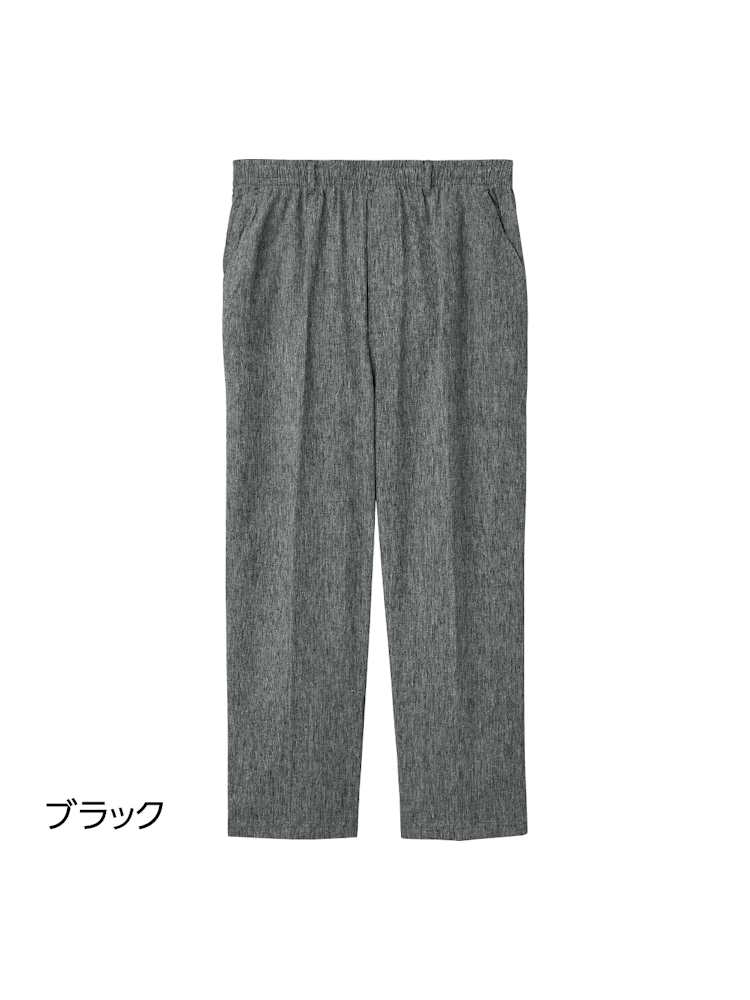 メンズ 麻混楊柳ストレートパンツ【CF】(ブラック)