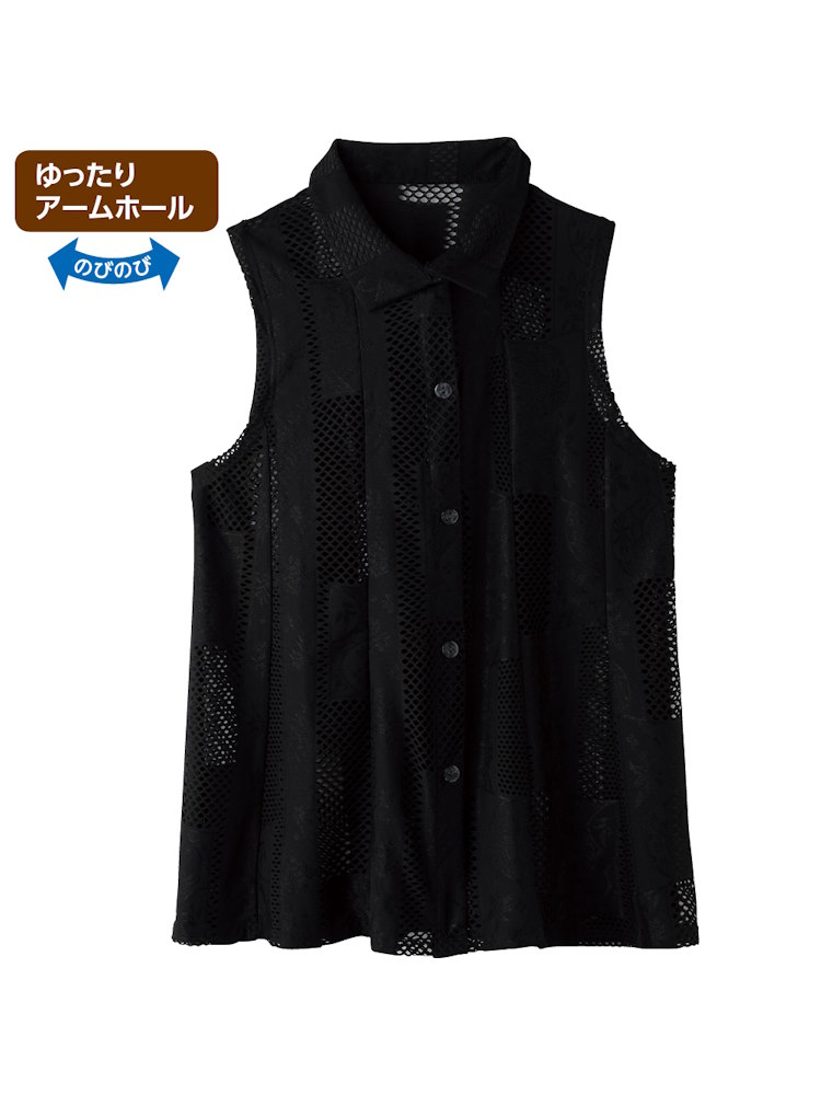 【前開き】【ベスト】斜め釦ホール衿付ベスト1/婦人用/レディース/シニア/高齢者/ゆったりアームホール/斜めボタンホール/M~L 【CF】(ブラック)