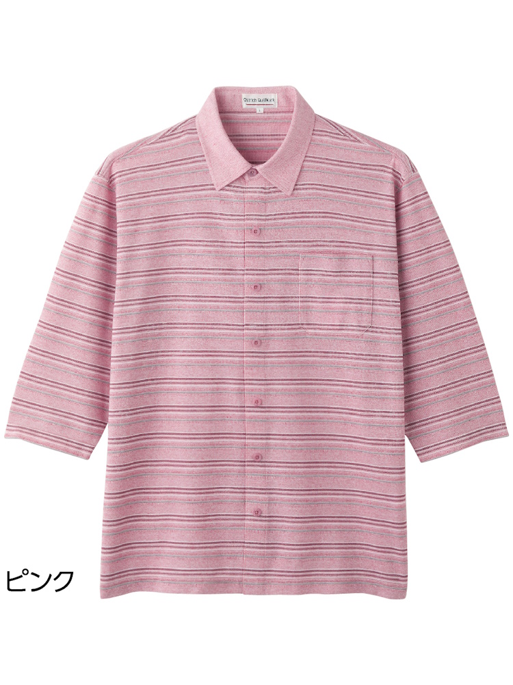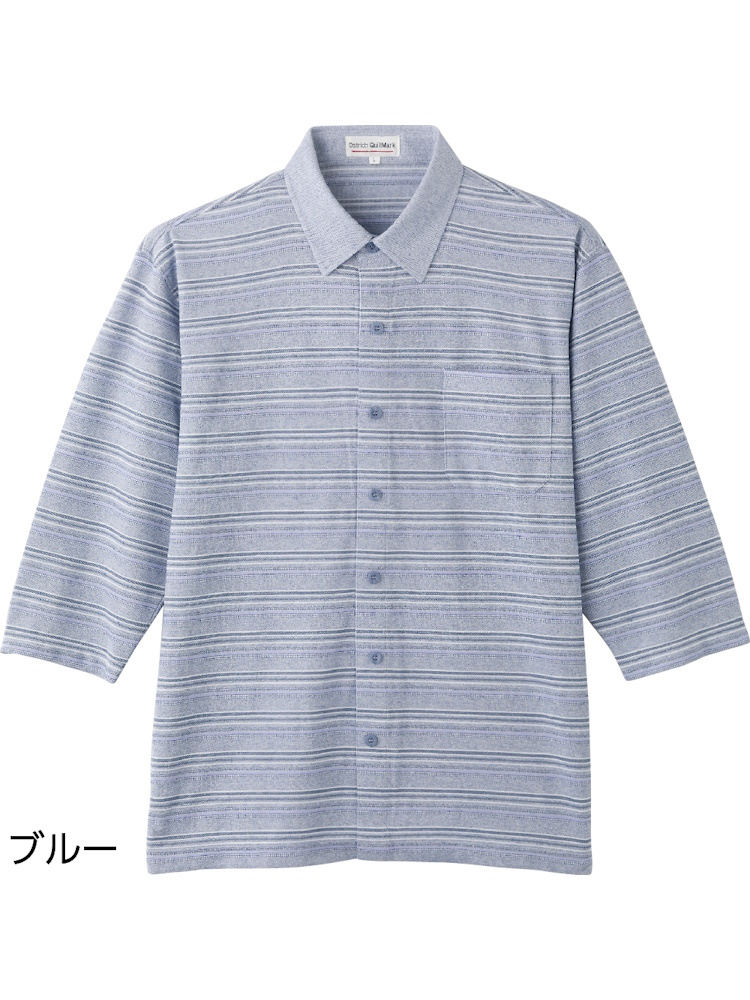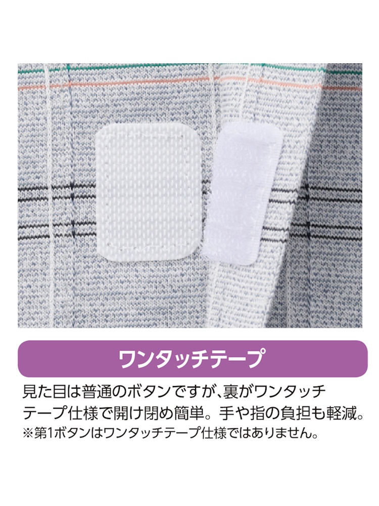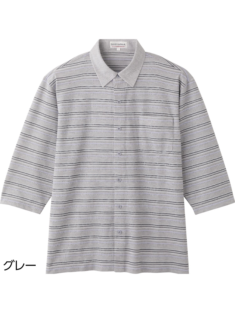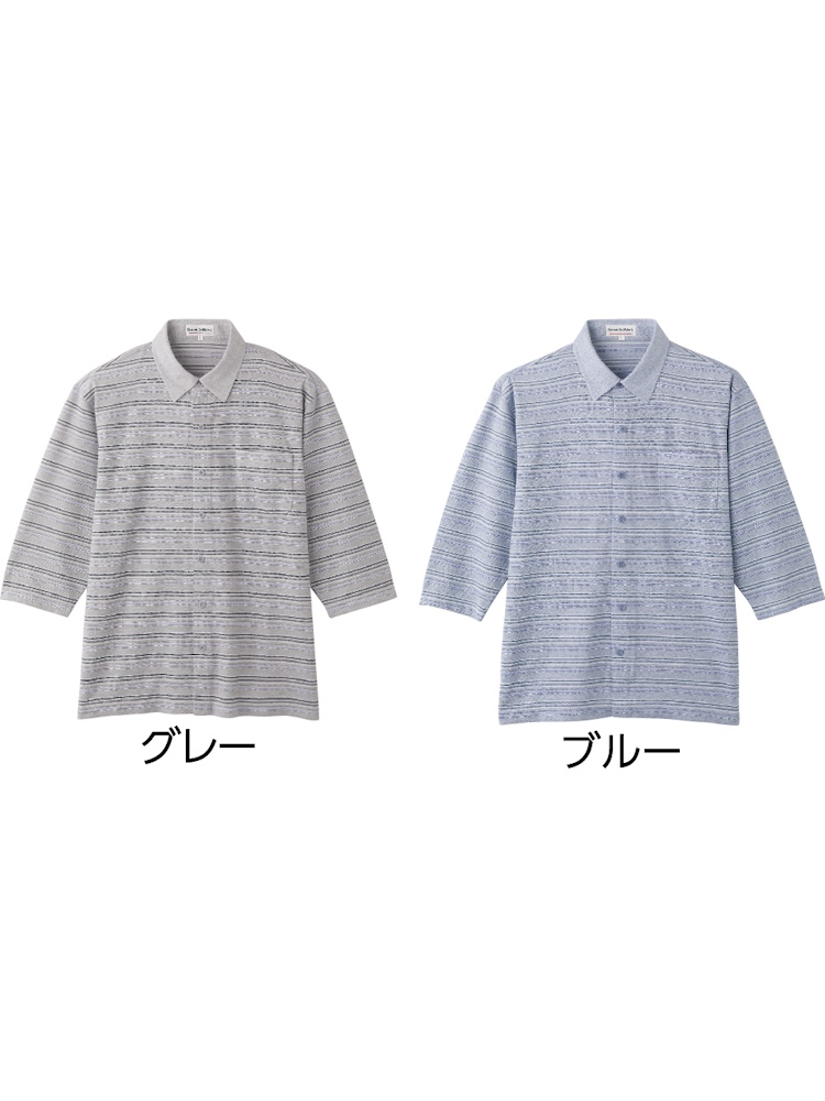 サッカーワンタッチテープ7分袖シャツ/紳士用/メンズ/前開き/ギフト/プレゼント/ワンタッチテープ/着やすい/おしゃれ/シニア/高齢者【CF】
