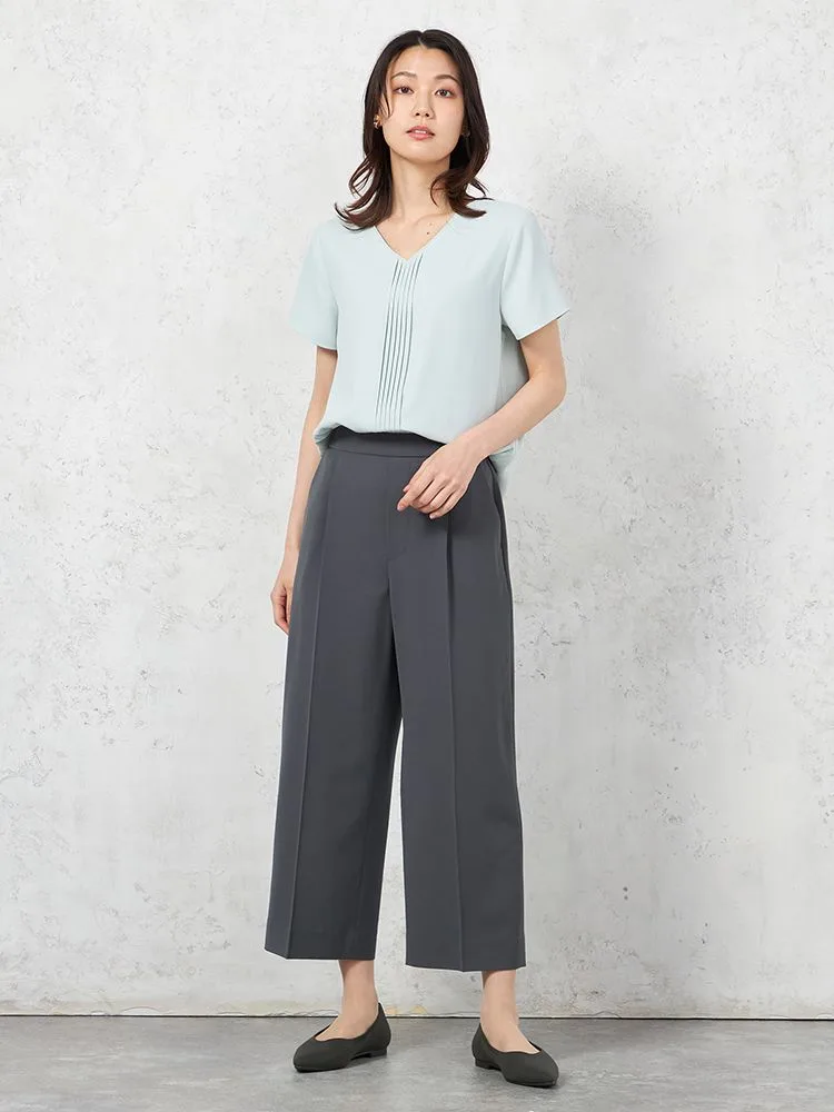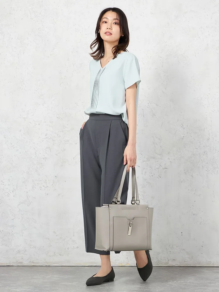 センターのピンタックディテールがデザインアクセントになり、細身え効果にもなります。
