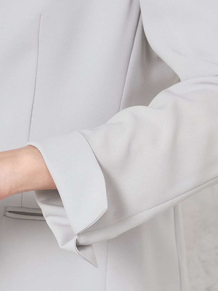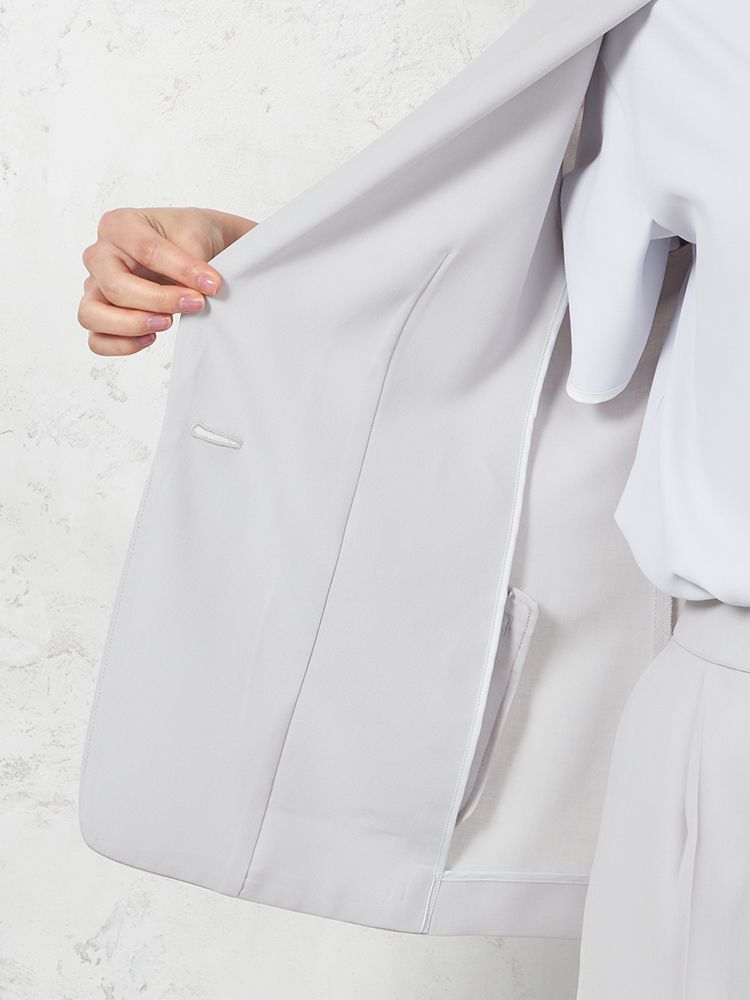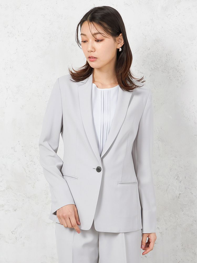 1つボタンのデザインで、シンプルかつスタイリッシュな印象を与えます。洗練されたシルエットが特徴です。