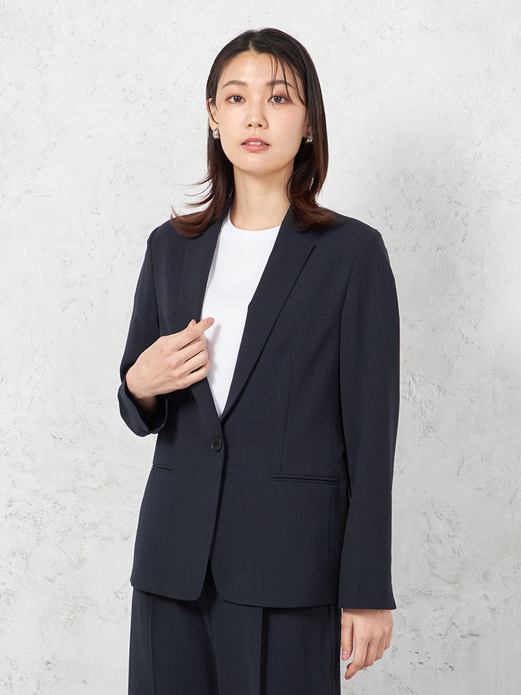 【INDIVI】ウォッシャブル クールツイスト テーラード 1つボタン ジャケット 無地 【レディース】(ネイビー)