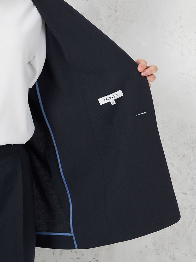 切り込みが1本のセンターベントデザインです。細身でスッキリとしたシルエットが特徴で、快適な着心地を提供します
