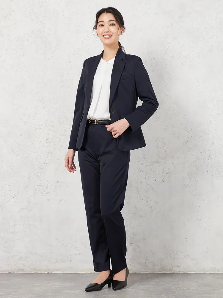 パンツの腰回りに生地の折り込みがなく、スッキリとしたシルエットを実現します。シンプルで洗練された印象を与え、すっきりとした着こなしが可能です。