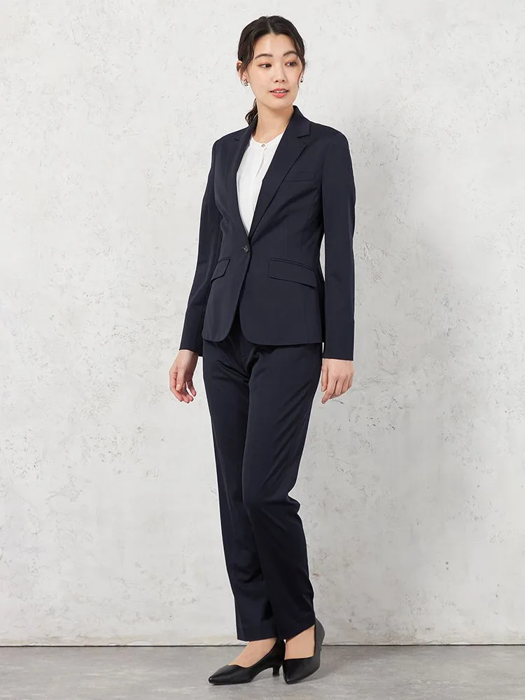 1つボタンのデザインで、シンプルかつスタイリッシュな印象を与えます。洗練されたシルエットが特徴です。