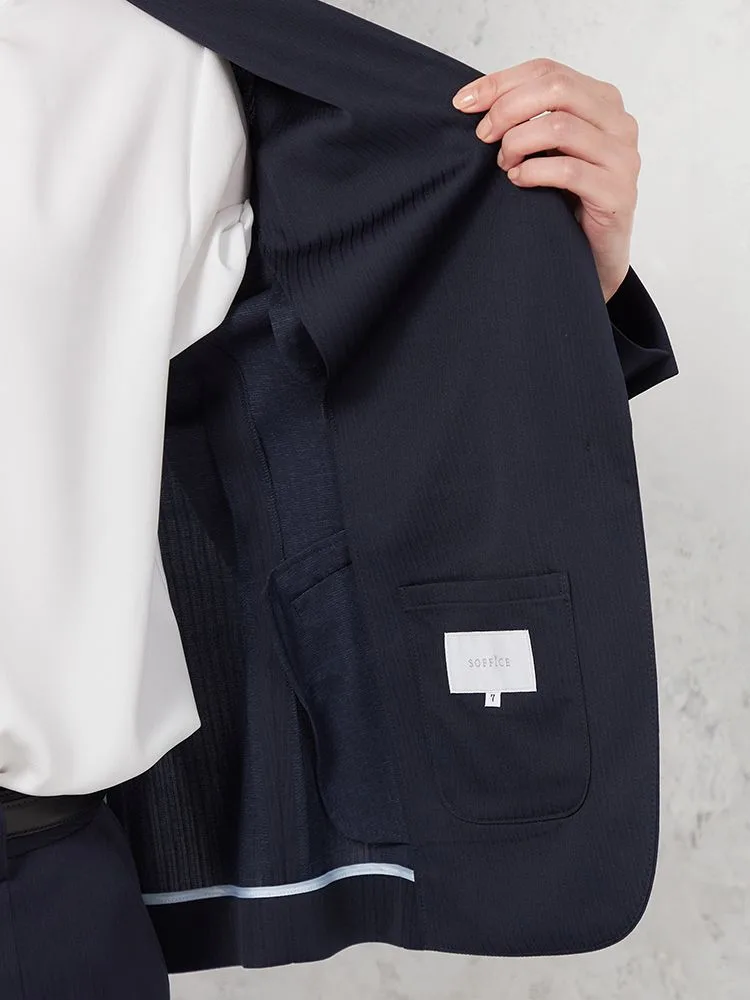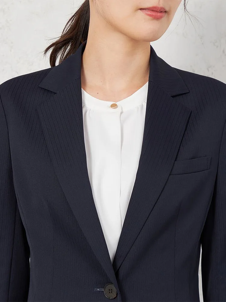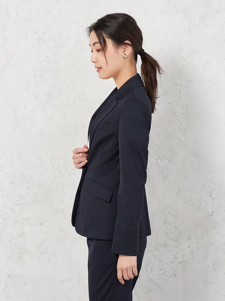 【働ラク肩ラクスーツ】ジャケット1つボタンウォッシャブルストレッチネイビーストライプSOFFICE秋冬【レディース】