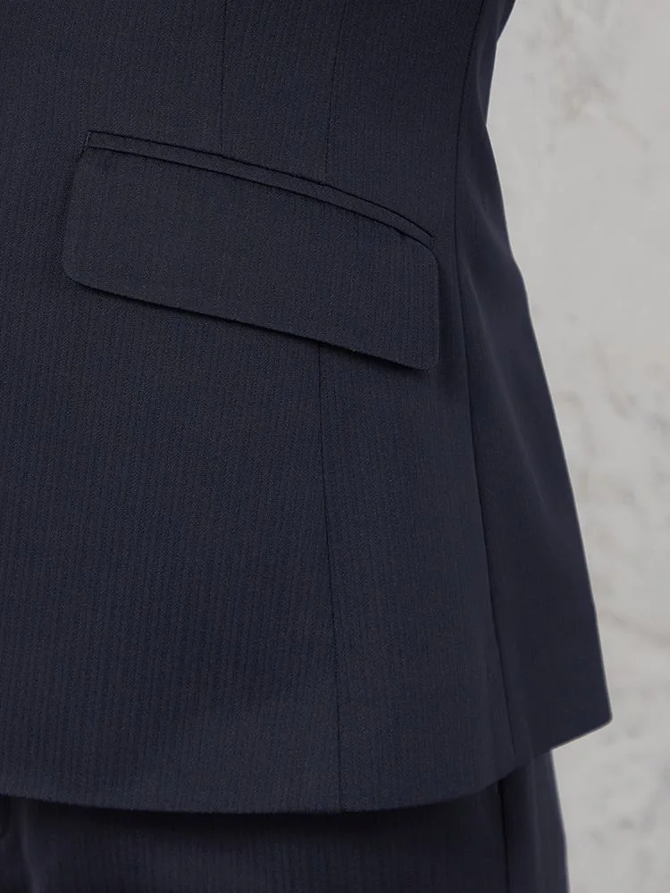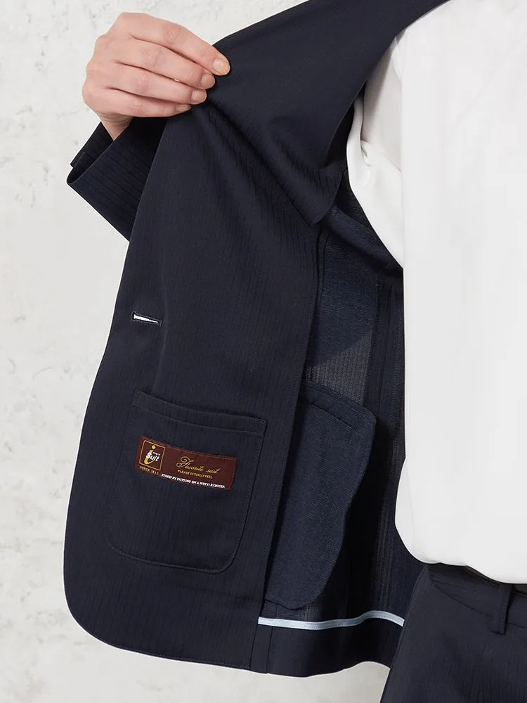 切り込みが1本のセンターベントデザインです。細身でスッキリとしたシルエットが特徴で、快適な着心地を提供します