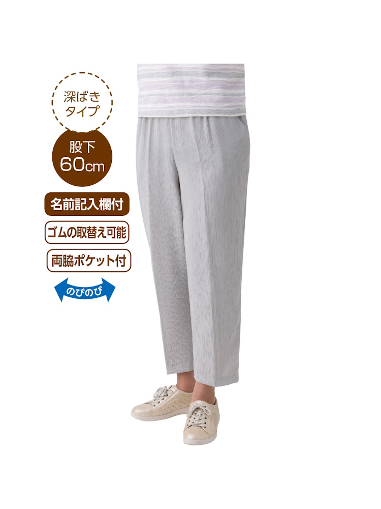 【深履き】【股下60cm】楊柳深履きパンツ/レディース/婦人/名前記入欄付/両脇ポケット 【CF】(ブラック)