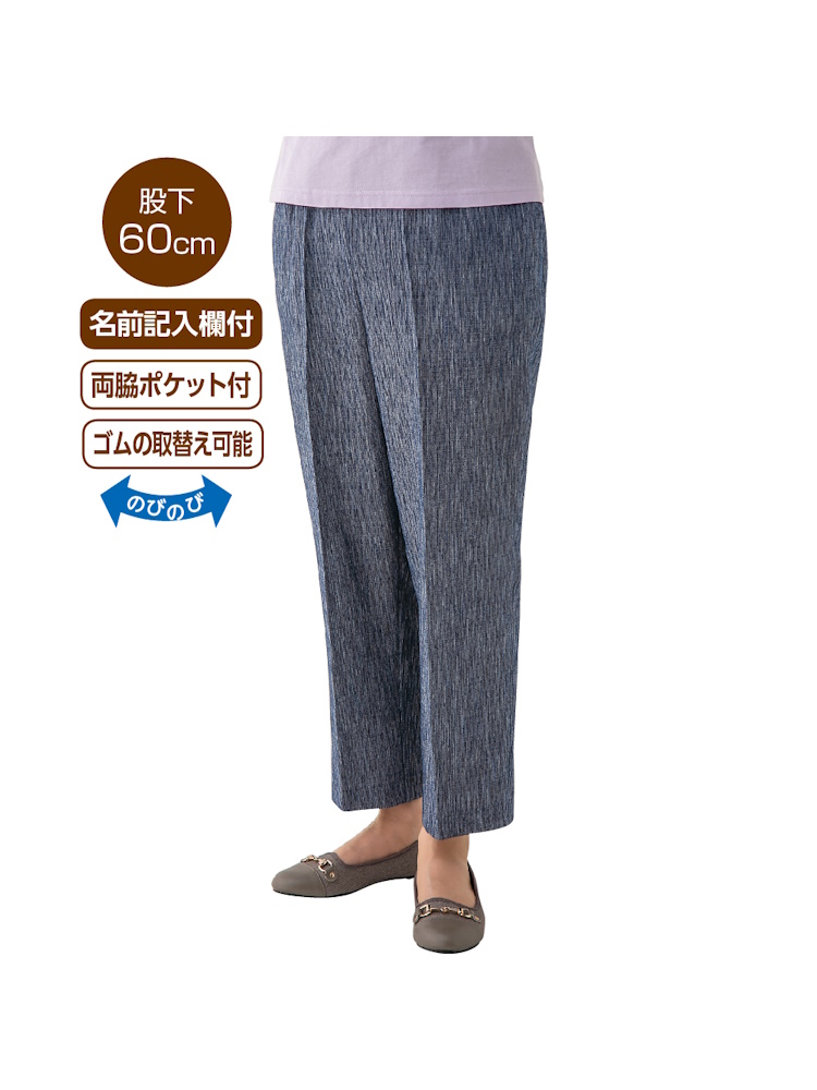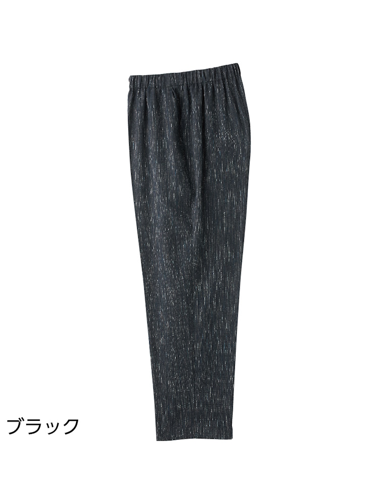 【シニア】【両脇ポケット】おりなす栃尾楊柳フリーパンツ/婦人用/レディース/高齢者/股下60cm/ウエストゴム/名前記入欄付/ズボン/M,L,LL,3L 【CF】(ブラック)