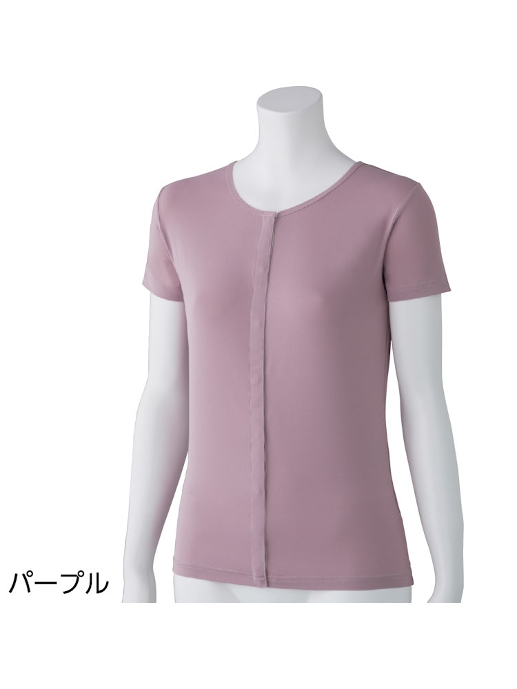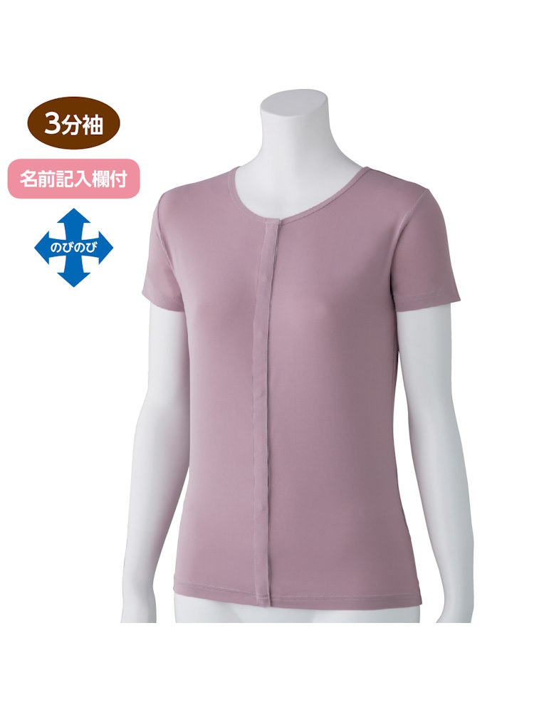 【前開き】スルッと着られる3分袖ホックインナー/高齢者/レディース/名前記入欄付き/シニア/下着/婦人用/S,M.L,LL 【CF】(ブラウン)