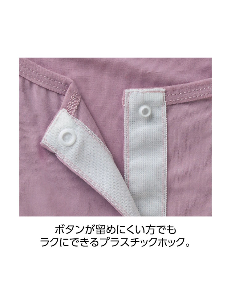【前開き】【あったか】のびのびラクラク裏起毛8分袖ホックインナー/婦人用/レディース/高齢者/シニア/秋冬/裏起毛/名前記入欄付/後ろ長め【CF】