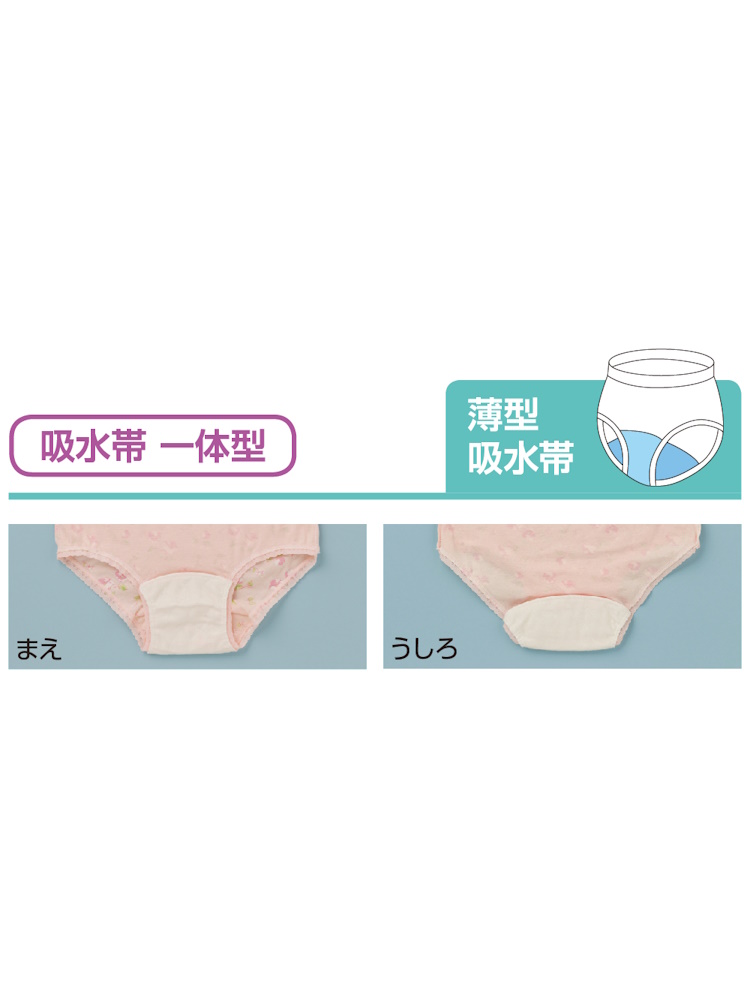 下着と吸水帯が一体になっているタイプです。吸水帯で尿漏れをしっかり吸水・拡散します。