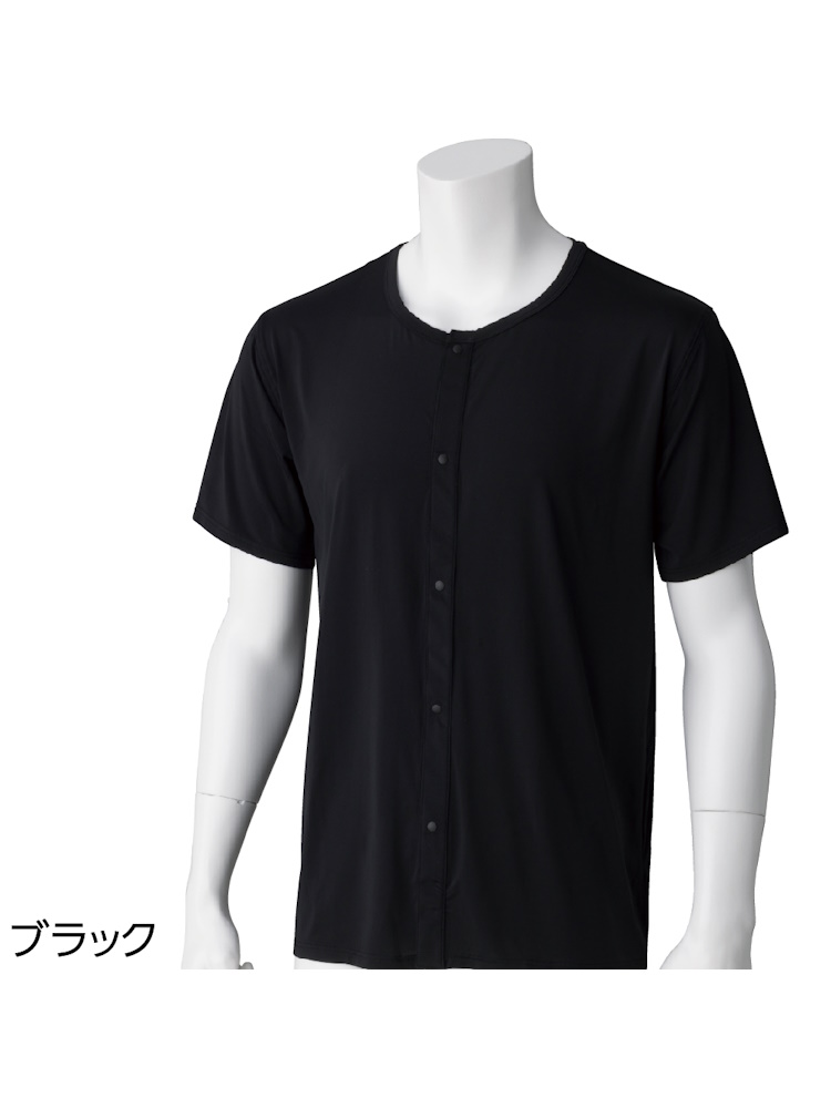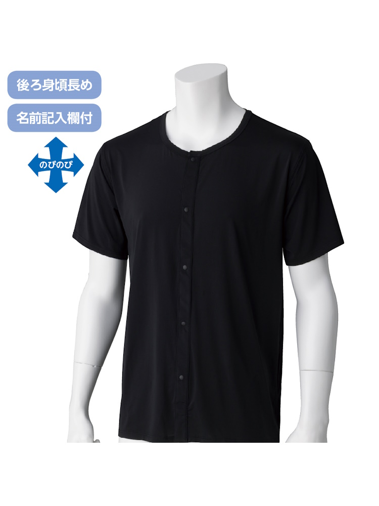 スルッと着られる半袖ホックインナー/紳士服/メンズ/シニア/高齢者/後ろ長め/名前記入欄付/着やすい 【CF】(ブラック)