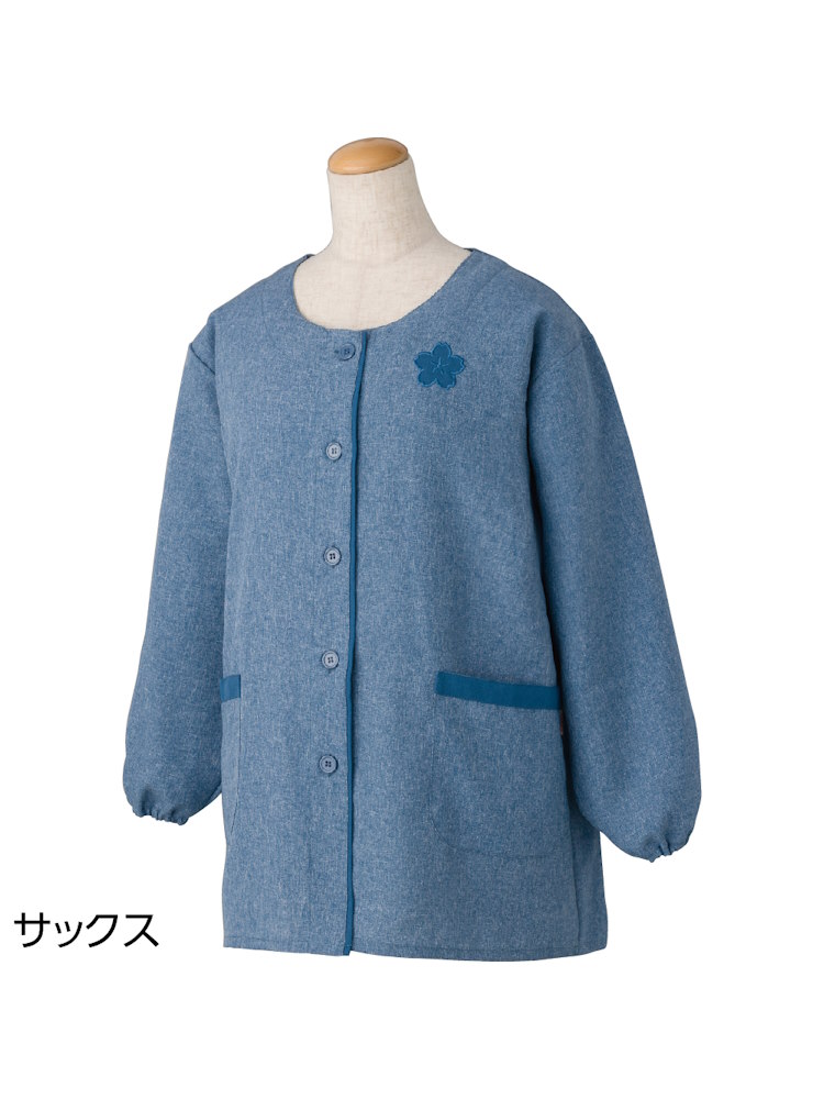 カチオン前開きスモック/割烹着/前開き 【CF】(サックス)