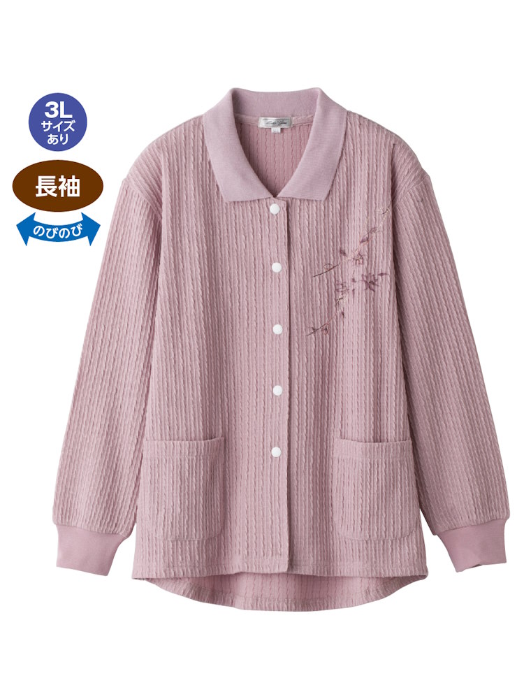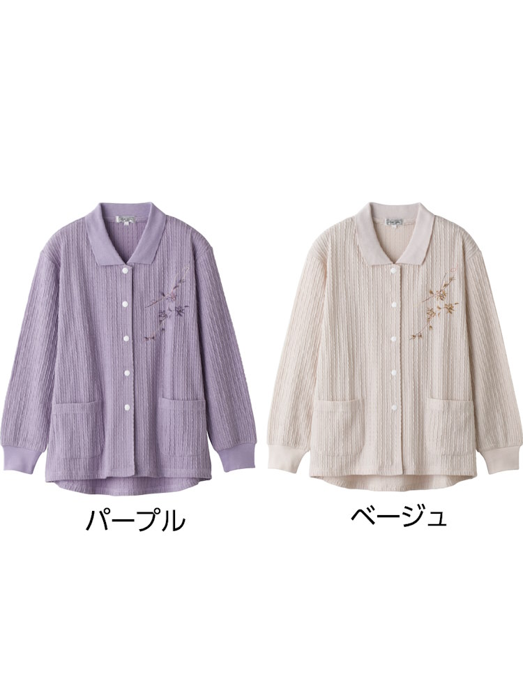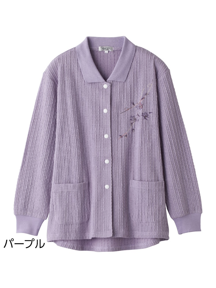 スナップ釦ポロカーディ3/婦人用/レディース/シニア/高齢者/前開き/着やすい/カーディガン/スナップボタン/冷房対策 【CF】(パープル)