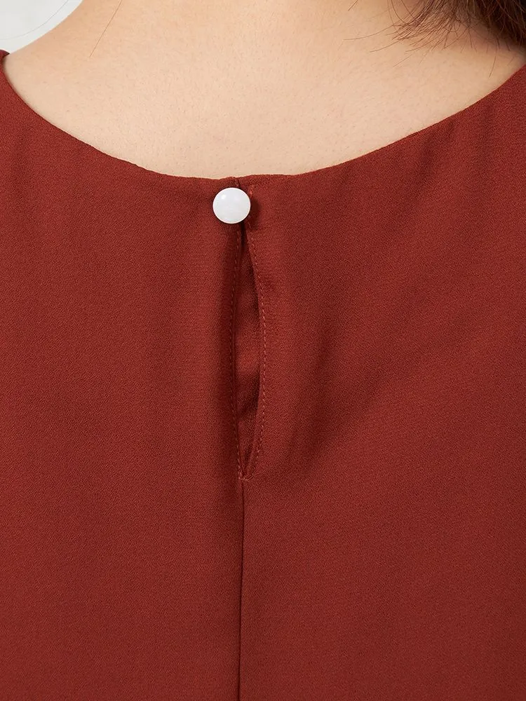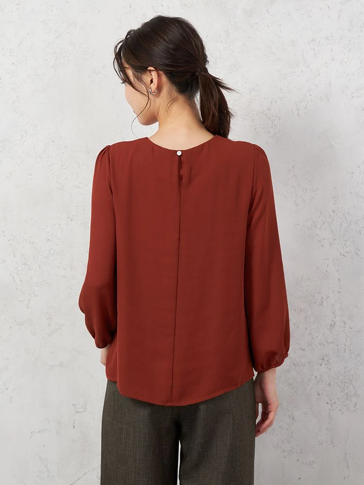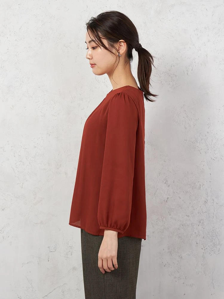 【イージーケア】ジョーゼット 2枚重ね パールディティールブラウス 9分袖 透け軽減 ウォッシャブル SOFFICE 通年【レディース】(ワイン)