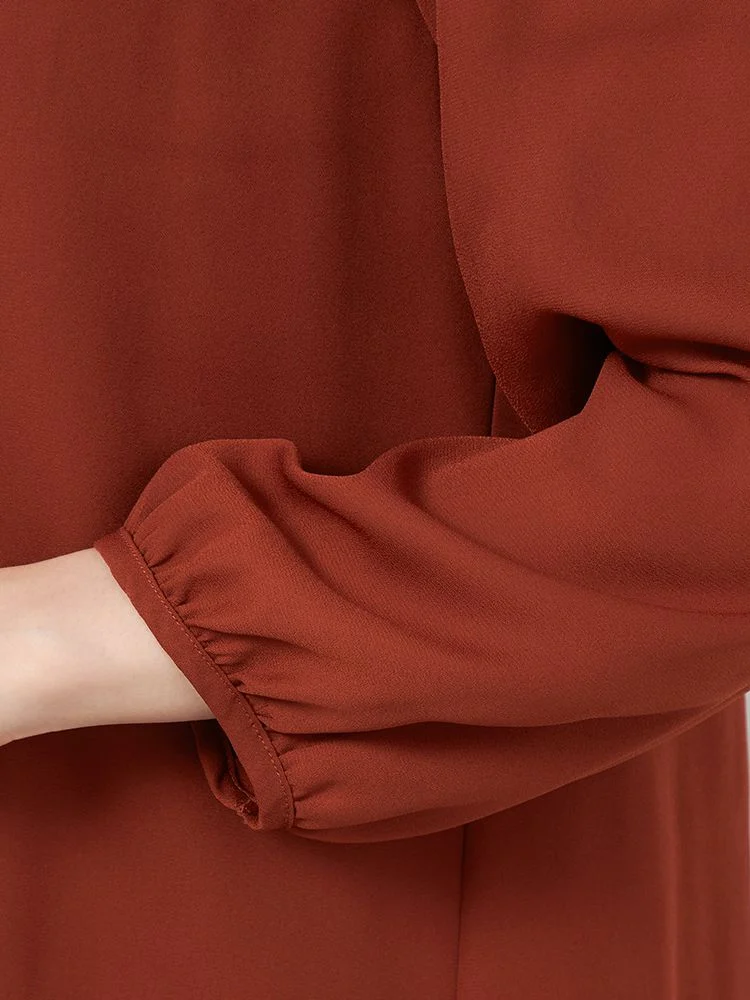 【イージーケア】ジョーゼット2枚重ね裾バルーンパールボタンブラウス9分袖透け軽減ウォッシャブルSOFFICE通年【レディース】