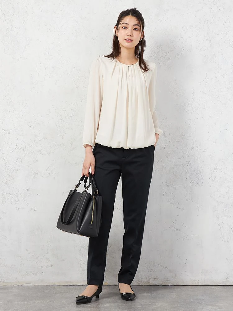 丸みを持たせたバルーンシルエットで、裾が自然にタックインしているように見え、動いたときにも裾を気にすることなく過ごせます。