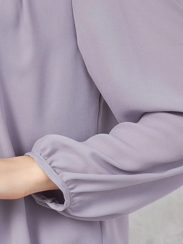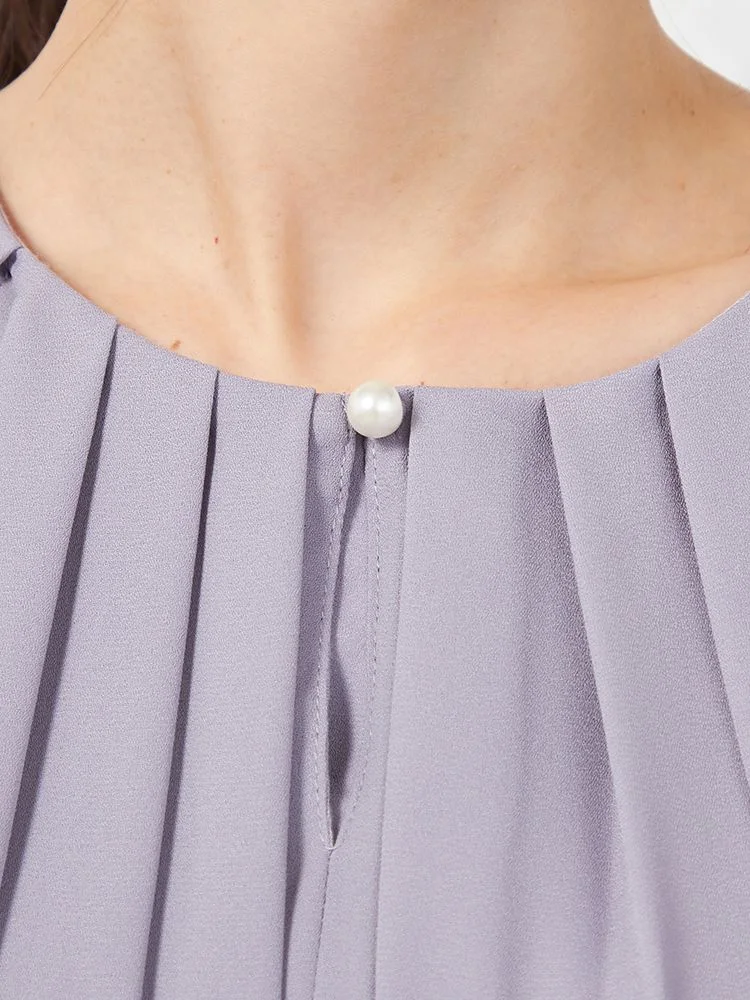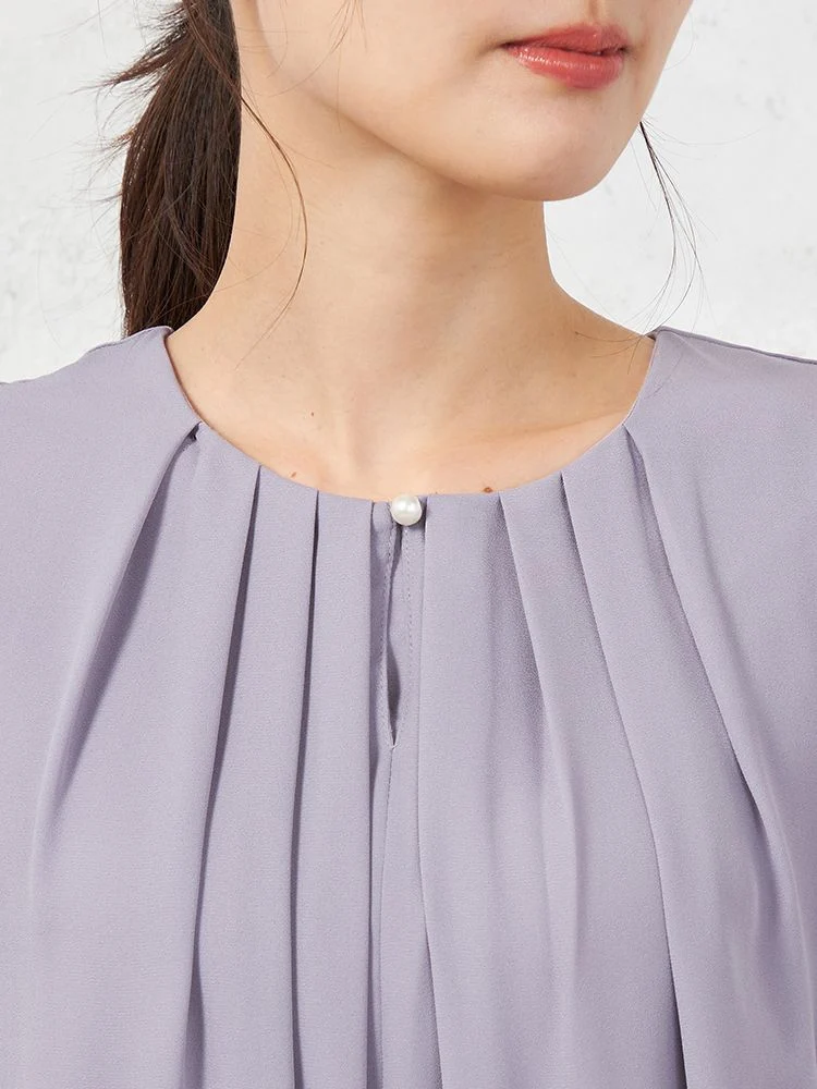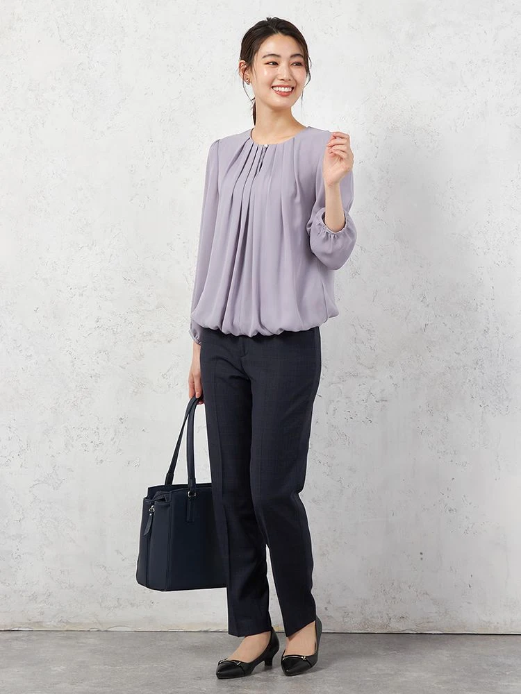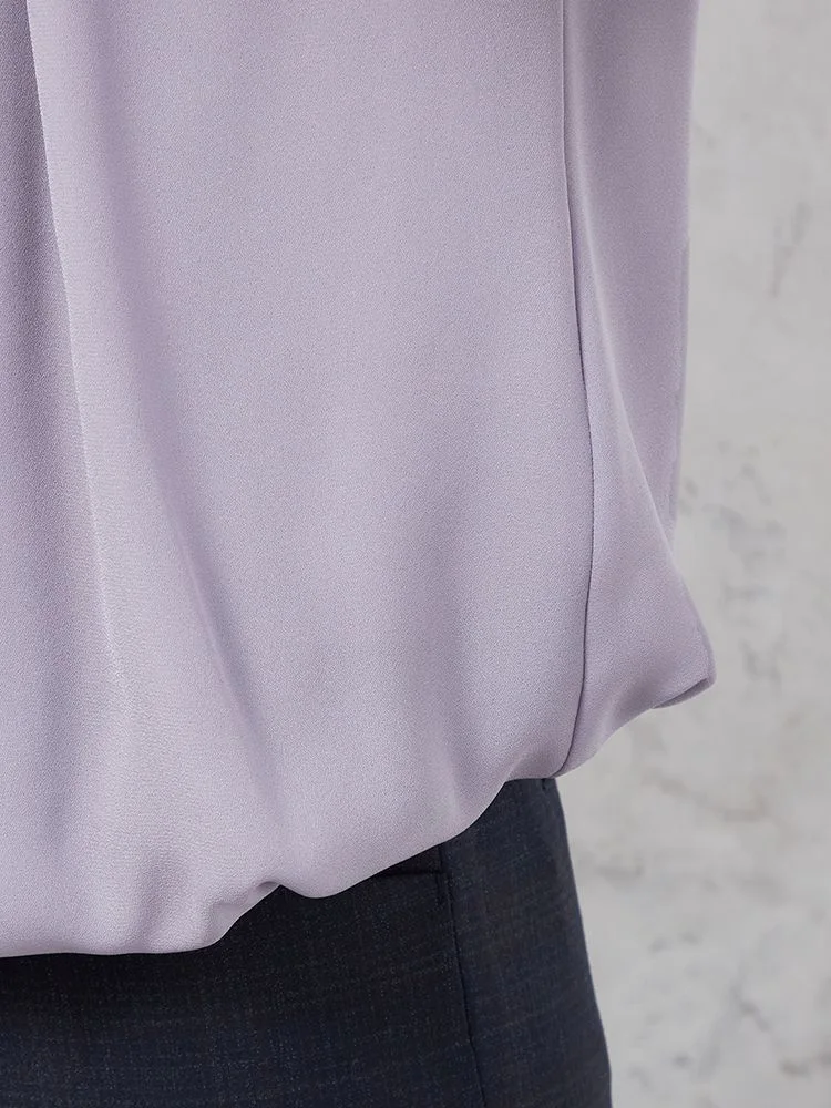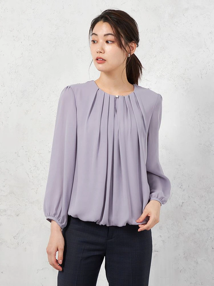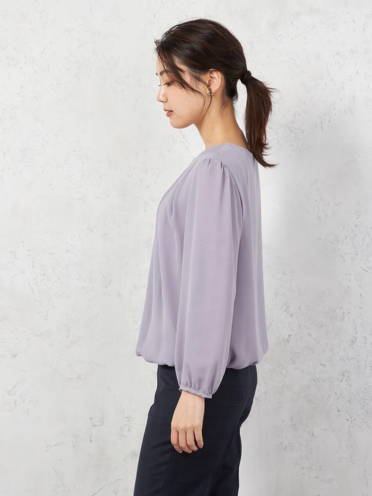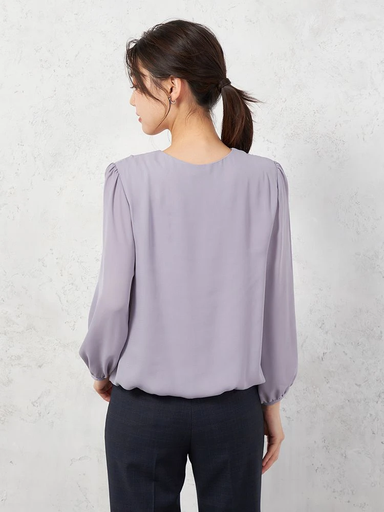 【イージーケア】ジョーゼット 2枚重ね 裾バルーンパールボタンブラウス 9分袖 透け軽減 ウォッシャブル SOFFICE 通年【レディース】(パープル)