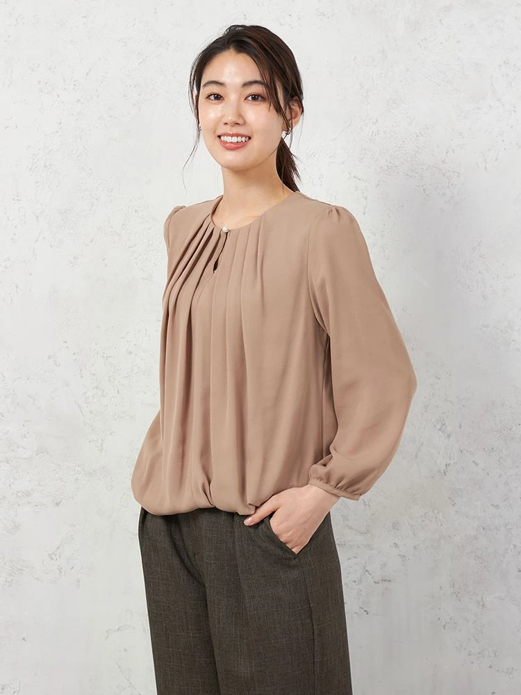 【イージーケア】ジョーゼット2枚重ねパールディティールブラウス9分袖透け軽減ウォッシャブルSOFFICE通年【レディース】