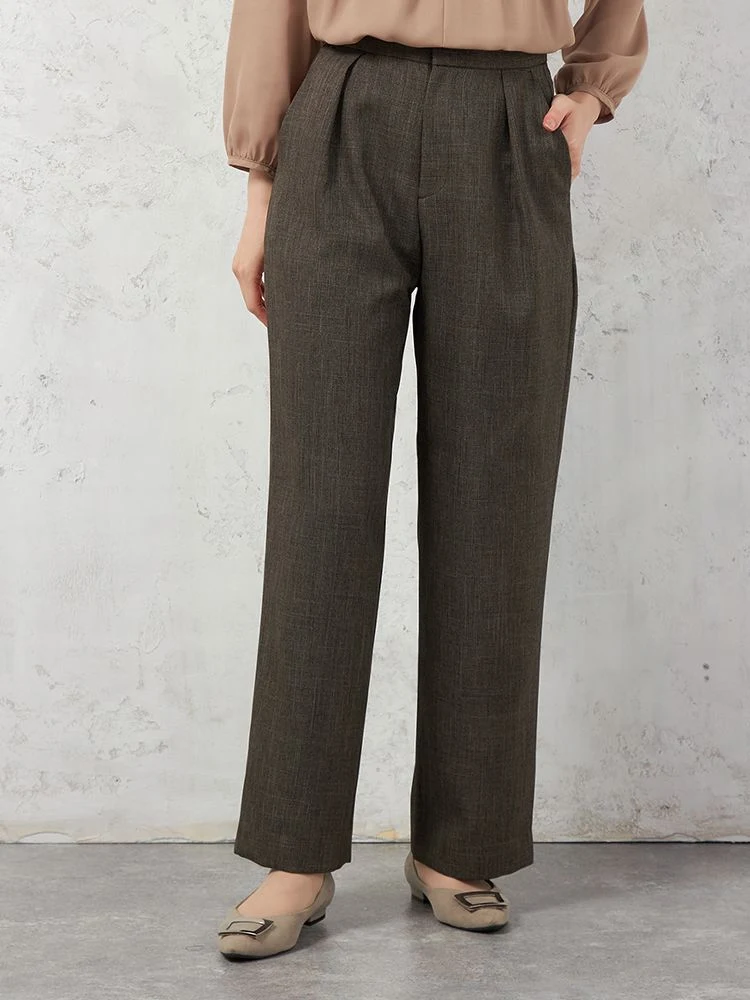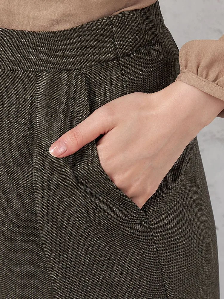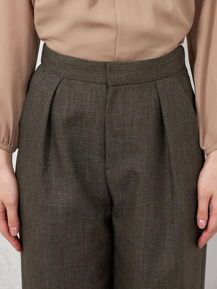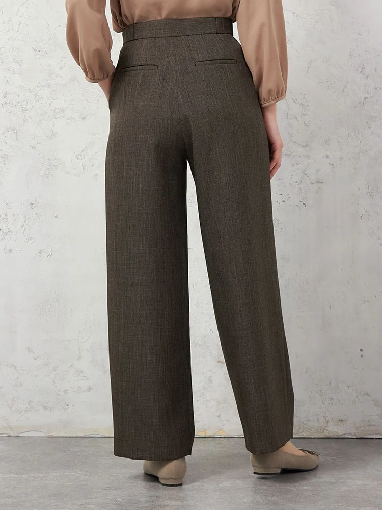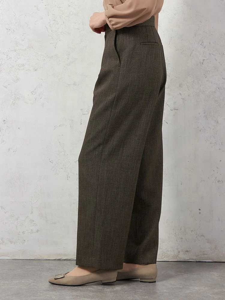 【働ラク肩ラクスーツ】ウールライク ワイドパンツ ウォッシャブル ストレッチ SOFFICE 秋冬【レディース】(ブラウン)