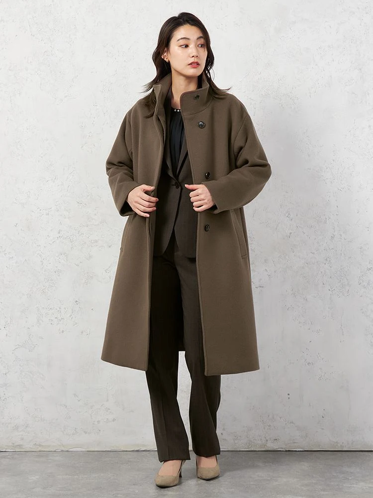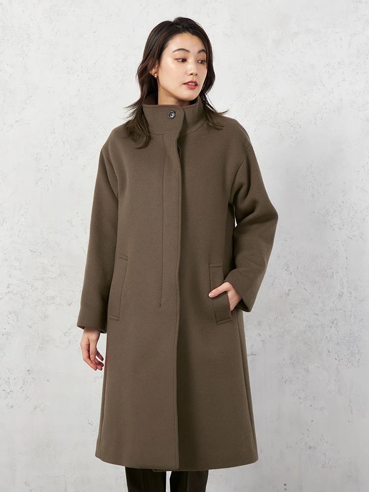 【MANTECO】スタンドカラーコート ウール混 インポート素材 比翼仕様 STOVEL&MASON【レディース】(D.ブラウン)