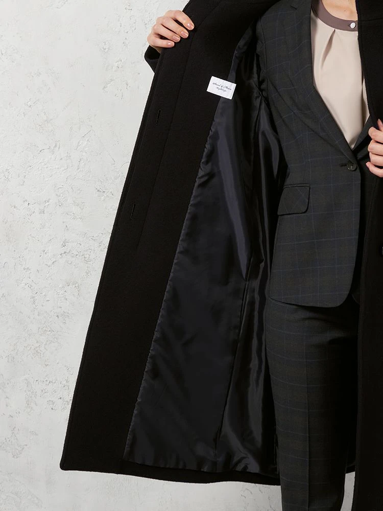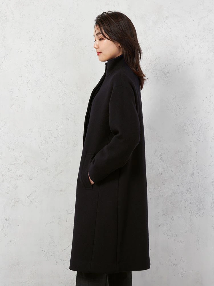 イタリアプラトー地区のMANTECO社にて生産された二重織紡毛素材を使用したスタンドカラーコート。