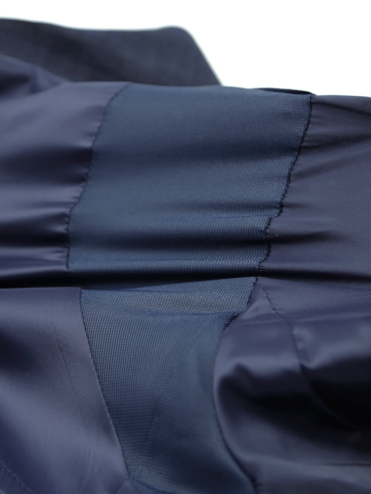 表地ストレッチ素材に加え、肩周りと肘回りにも伸縮性のあるトリコット裏地を使用。