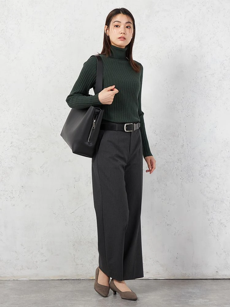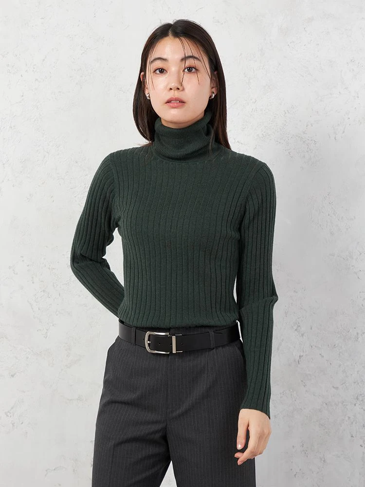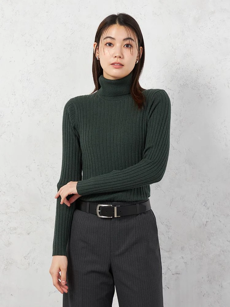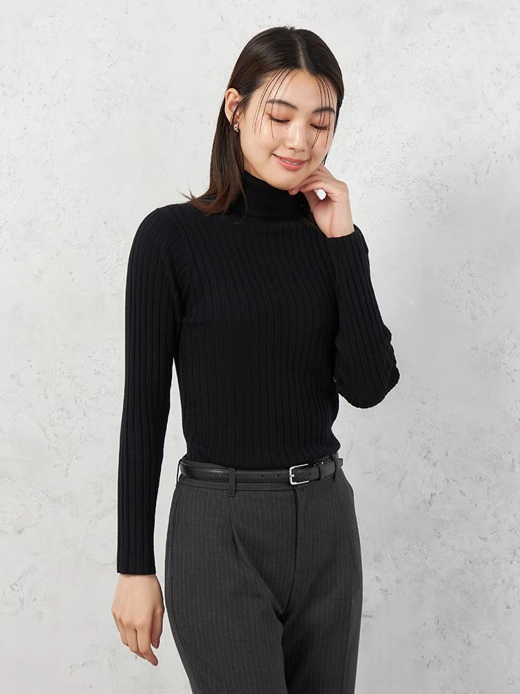 着回しやすいワイドリブタートルネックニット。
