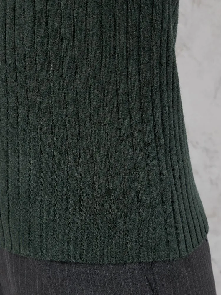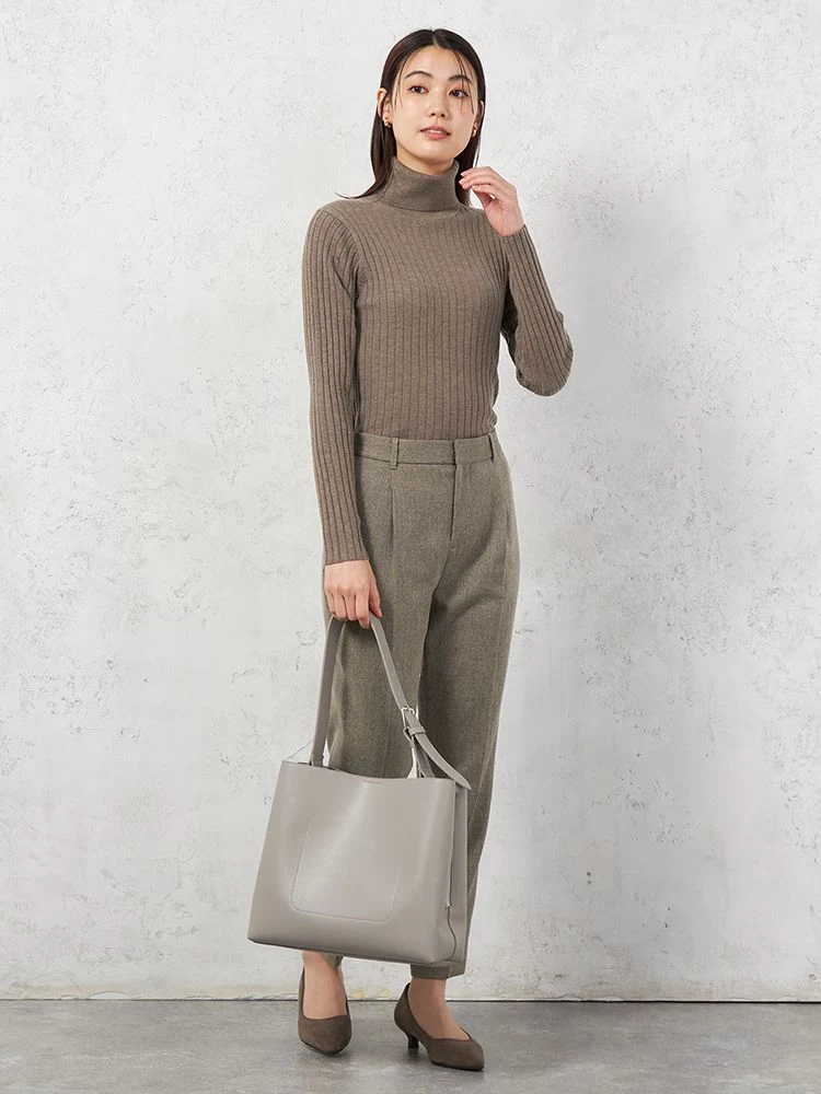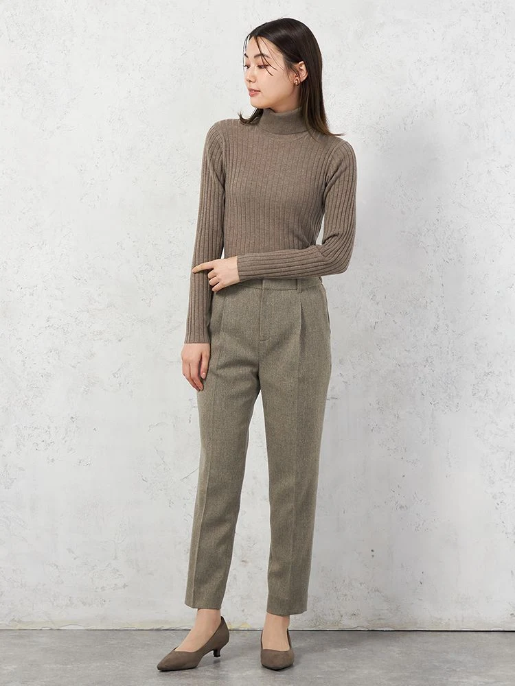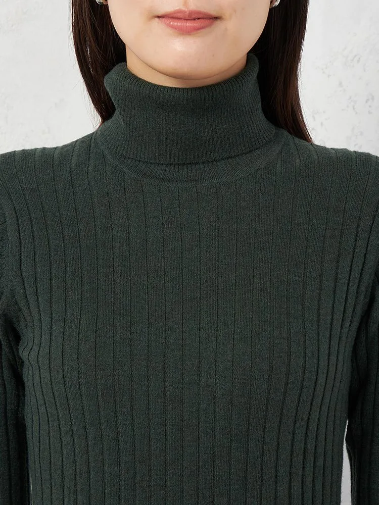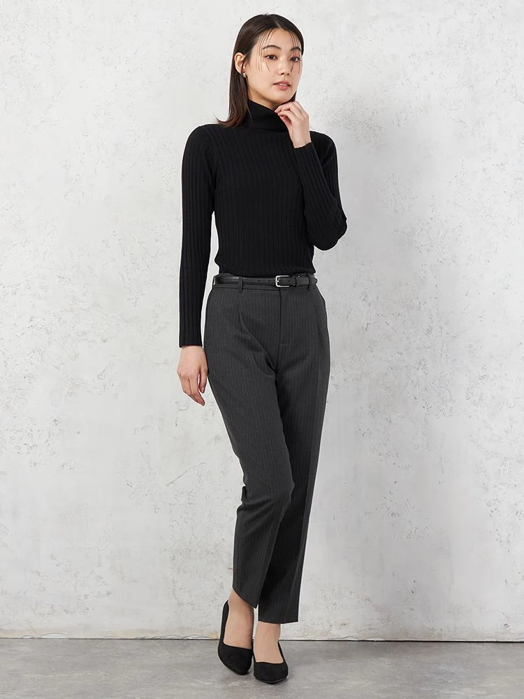 着回しやすいワイドリブタートルネックニット。