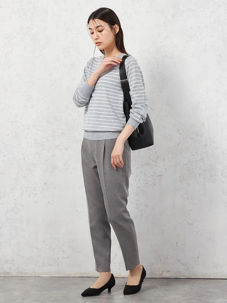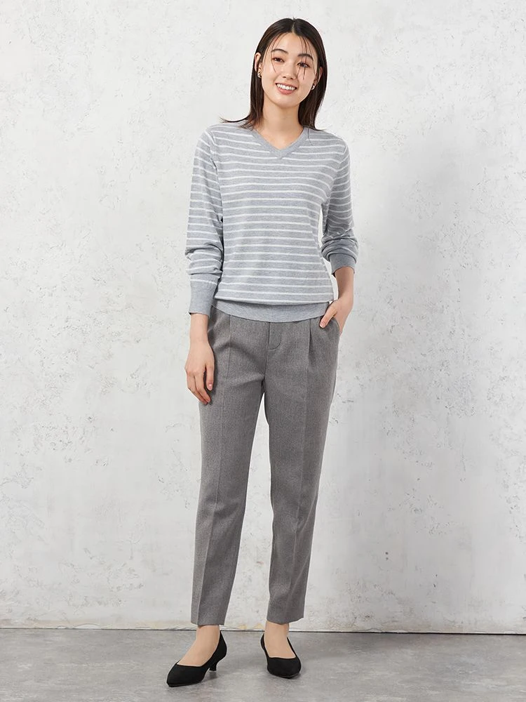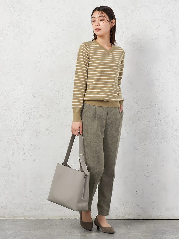 Vネックできちんと感がありながら、丸みのあるシルエットが女性らしい柔らかさをプラスしてくれるニットプルオーバー。