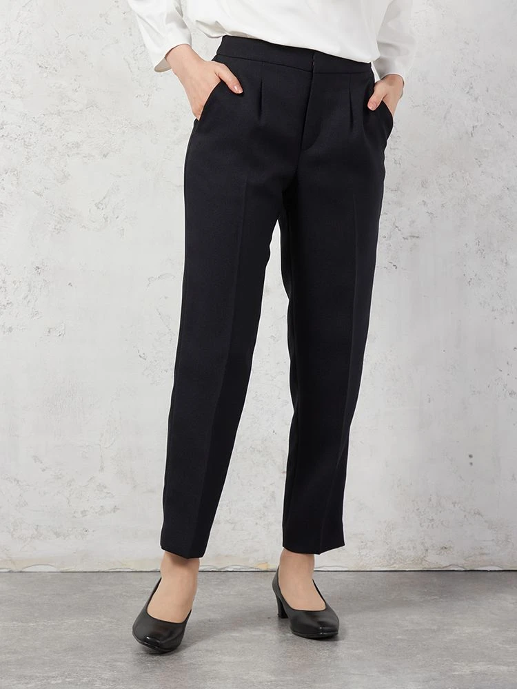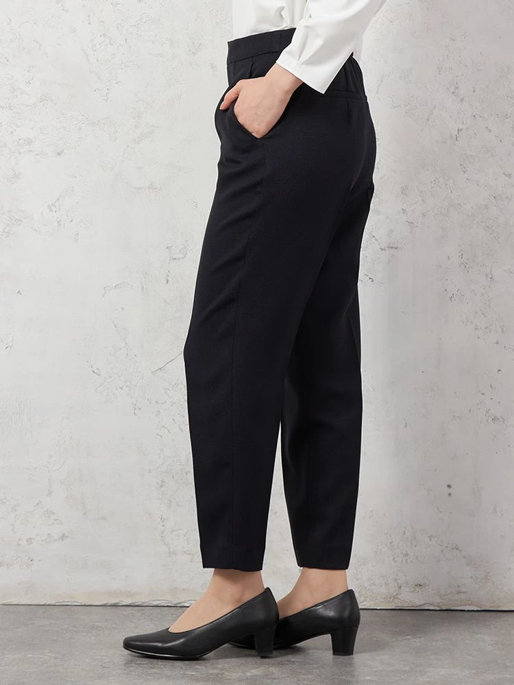 パンツは後ろゴム切り替えでラクチン、手持ちのアイテムとの組み合わせもおすすめです。